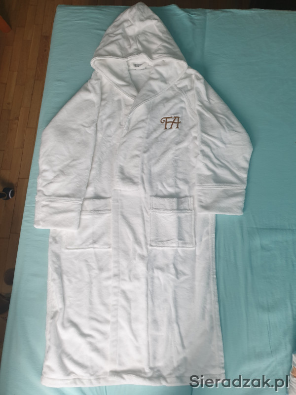 Sprzedam męski szlafrok z kapturem biały, nowy.