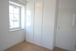 W jednym z pokoi przewidzianych na sypialnię dostosowano do tej funkcji oświetlenie. Na wyposażeniu tego pomieszczenia zabudowa stała szaf wykonana z mdf lakierowanego na biało.