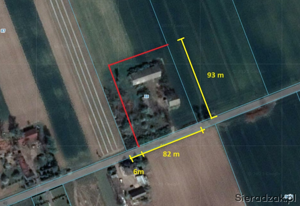 Powierzchnia działki to 76 arów wg wstępnego projektu podziału. Istnieje możliwość niewielkiej korekty granic działki.
