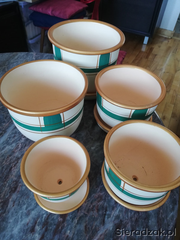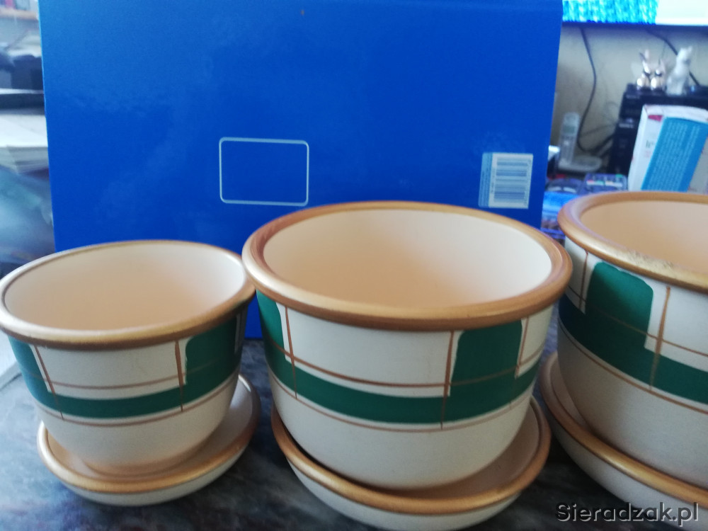 Mam do sprzedania komplet doniczek ceramicznych , praktycznie nie były używane, kolor dokładnie taki jak na zdjęciu. nieliczne, drobne ślady użytkowania na dwóch doniczkach i spodku. Jeden spodek niestety podczes przygotowań do zdjęć upadł i brakuje. Całość 140zł do negocjacji. Zapraszam do obejrzenia