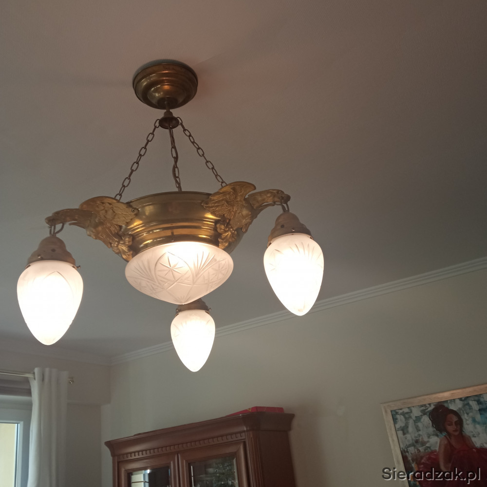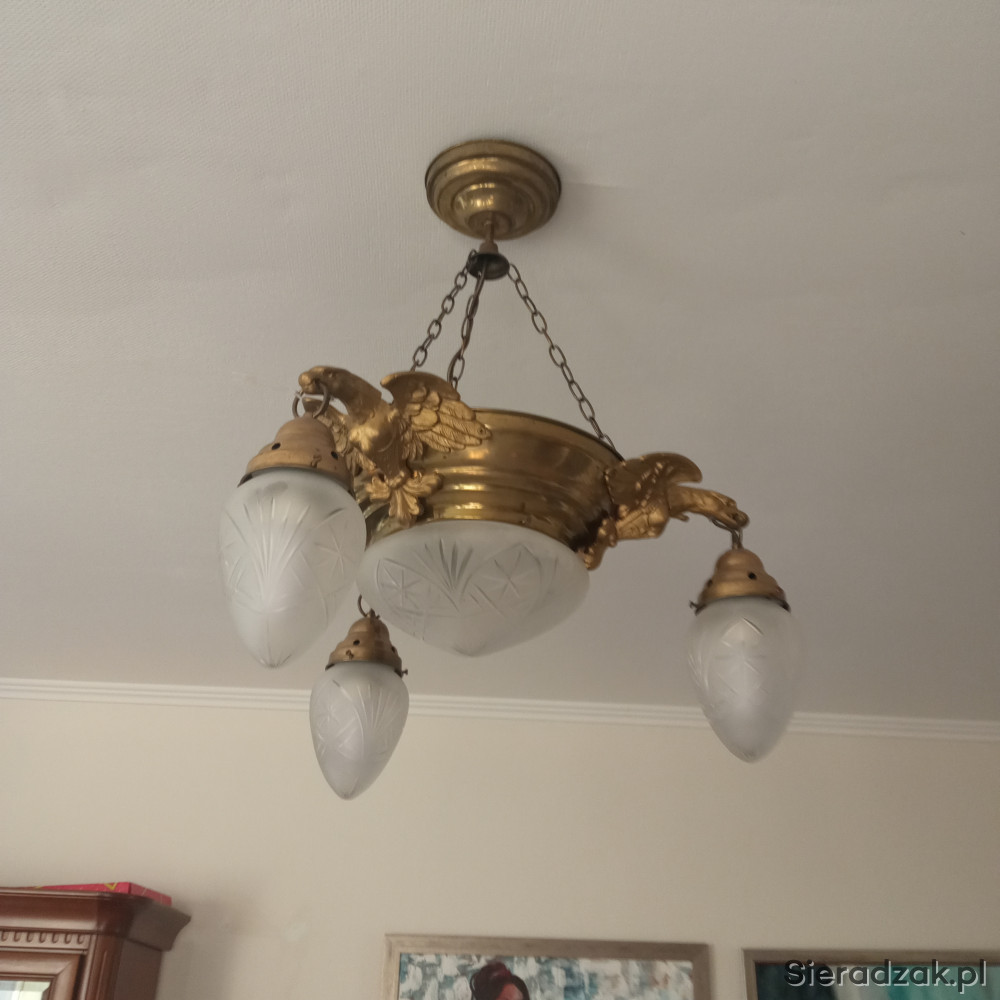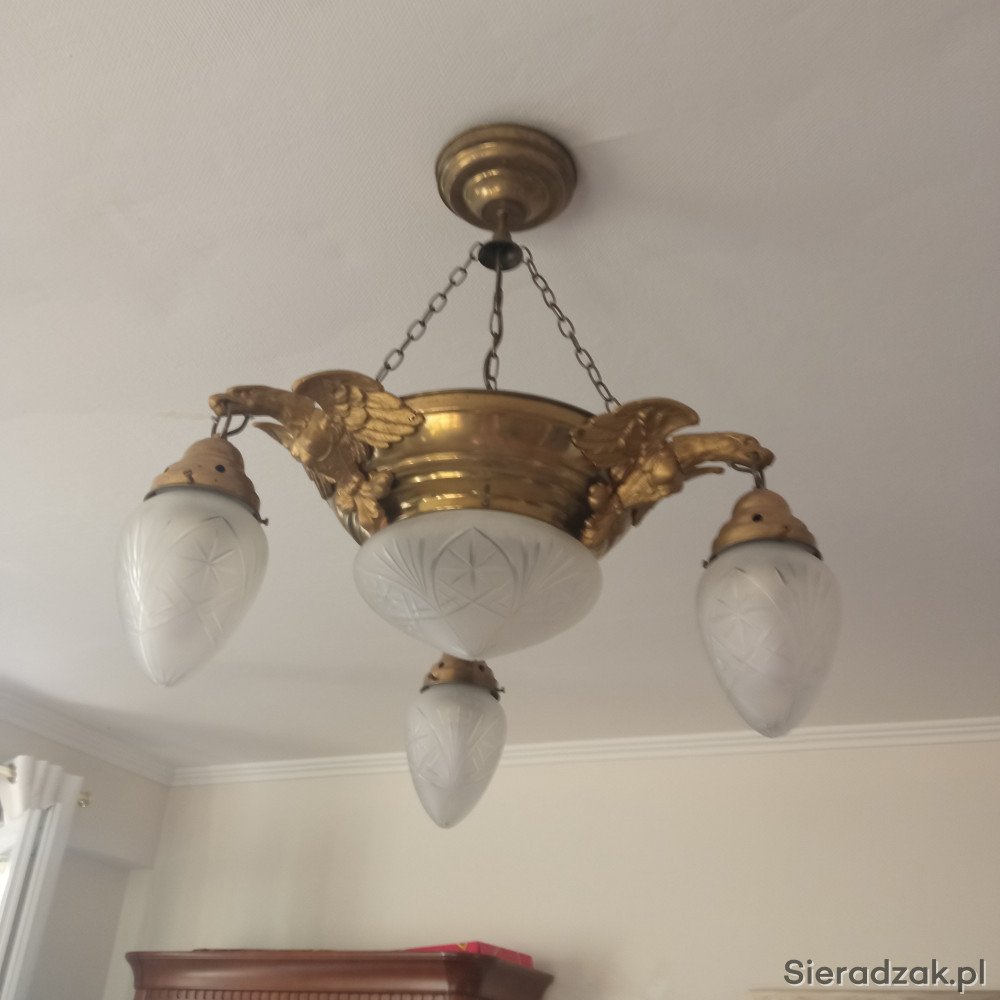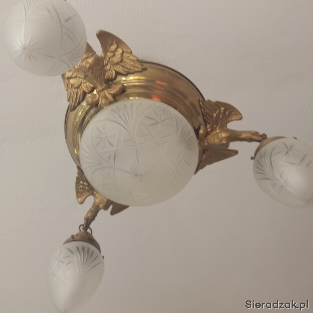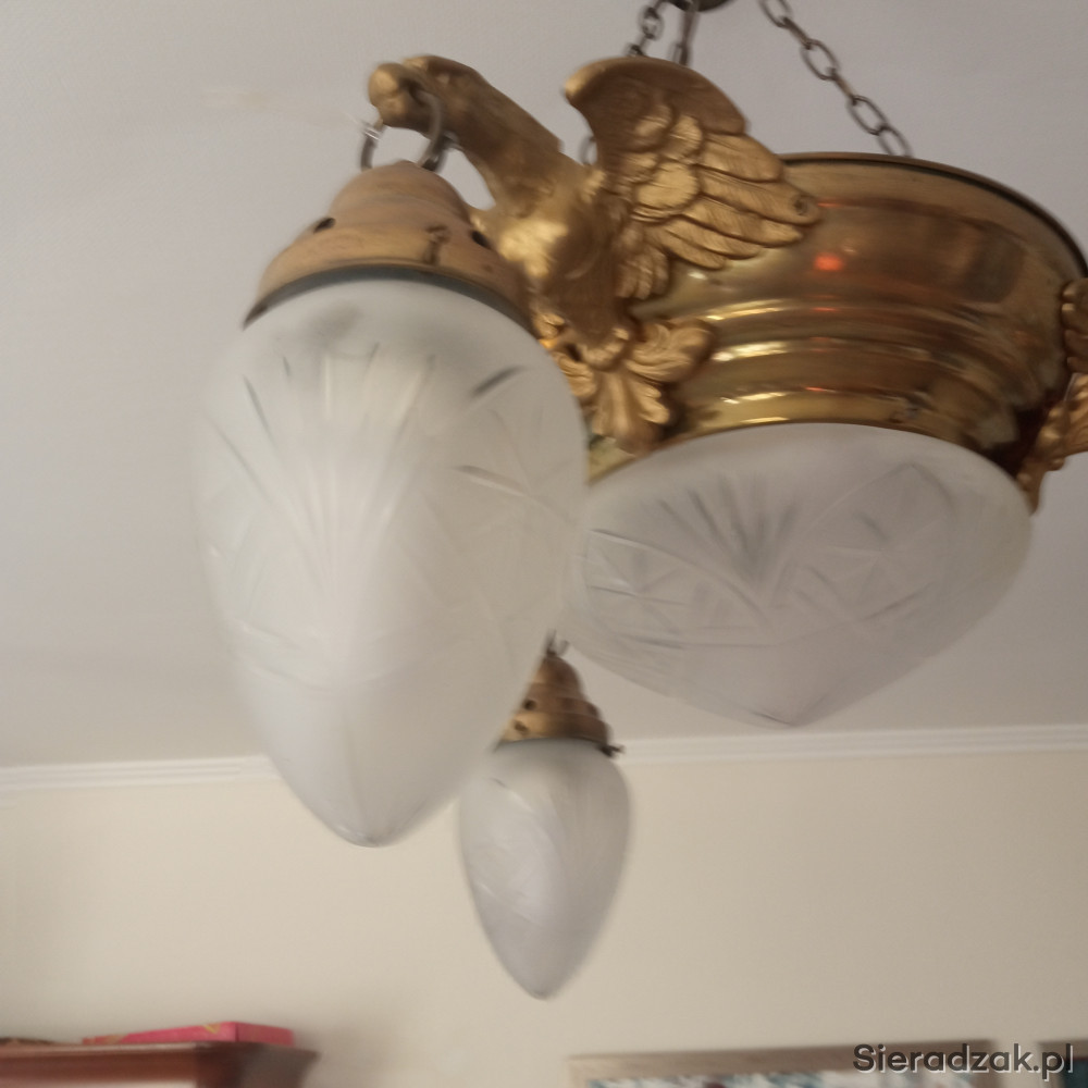 Sprzedam piękny stylizowany żyrandol. Jest on w pełni sprawny co pokazuje zdjecie, wykonany z mosiadzu z pięknymi kryształowymi kloszami i regulowaną na łańcuchach wysokością . Średnica 60 cm. Gorąco POLECAM