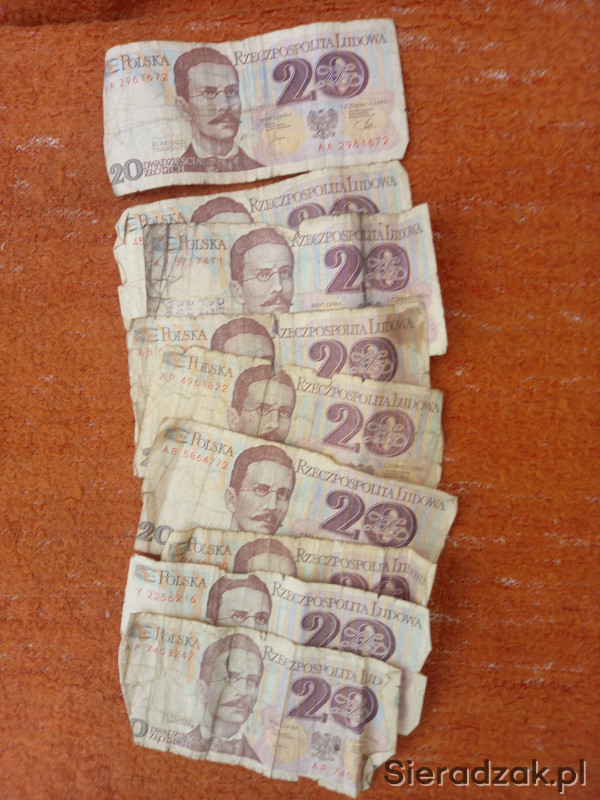 Sprzedam zestaw 20 banknotów 20 zł. Stan widoczny na zdjęciach. Możliwa też zamiana na papierosy z czasów PRL-u. Nie odpisuję na SMSy. Możliwa taż jest zamiana na stare płyty winylowe.
