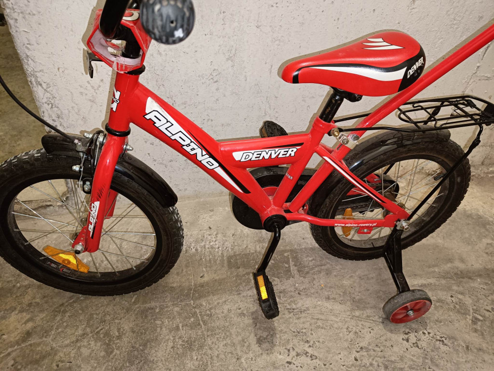 Sprzedam rowerek dziecięcy firmowy Alpino Denver. Rozmiar kół 16" cali. Rower posiada kółka boczne do nauki jazdy(można odkręcić) oraz drążek do prowadzenia.