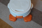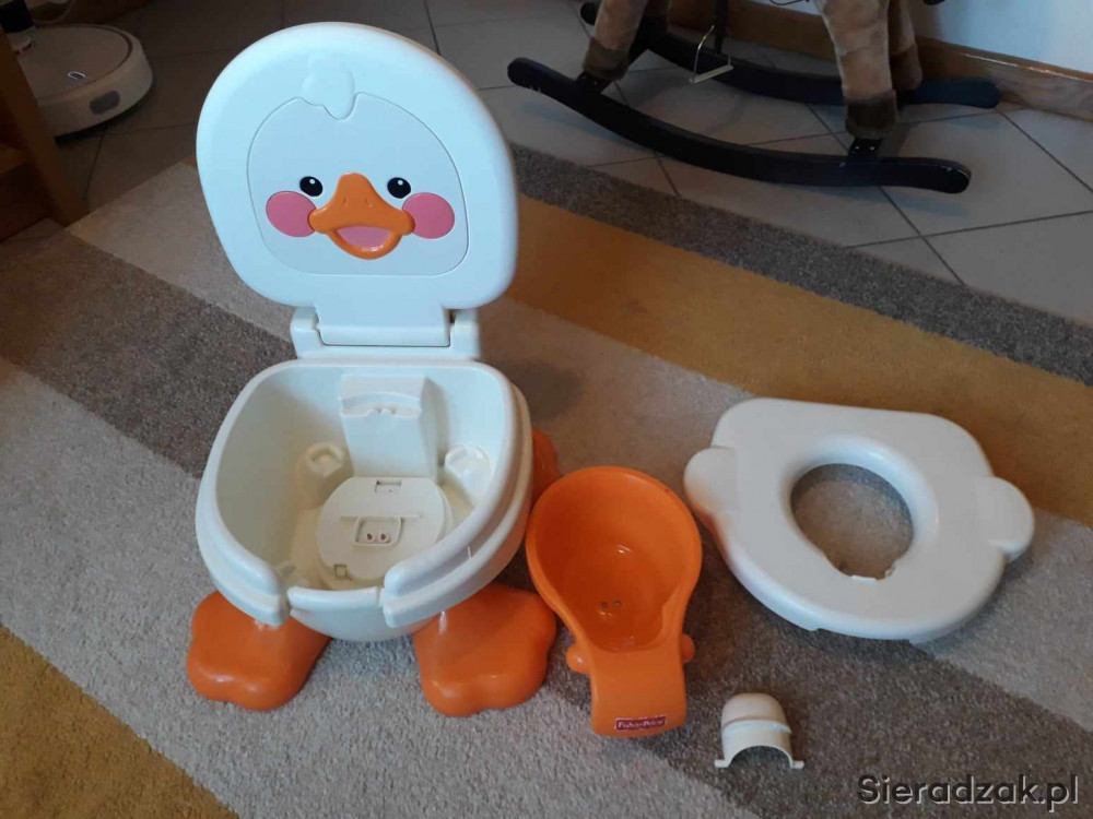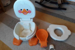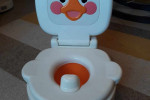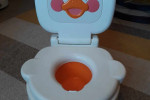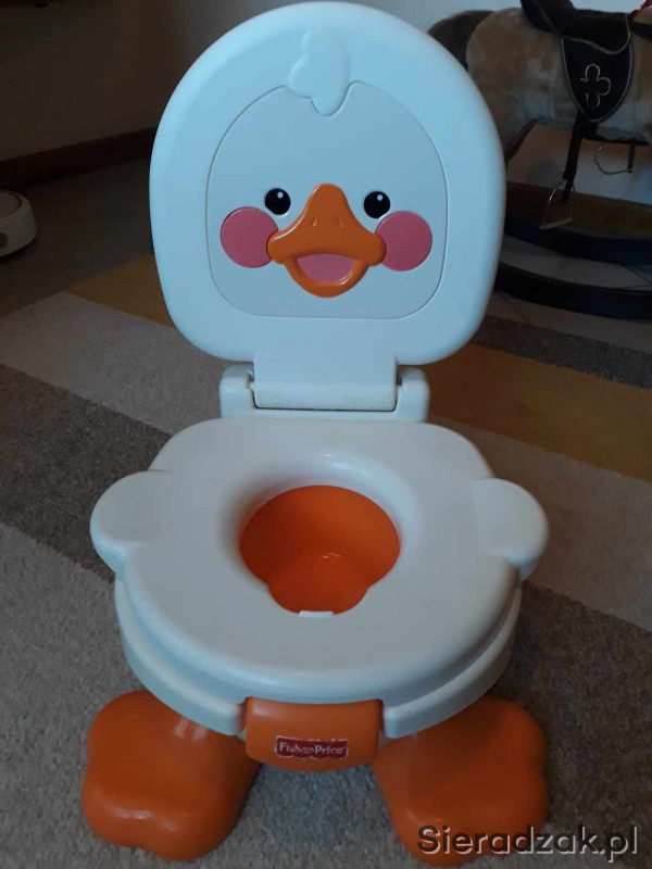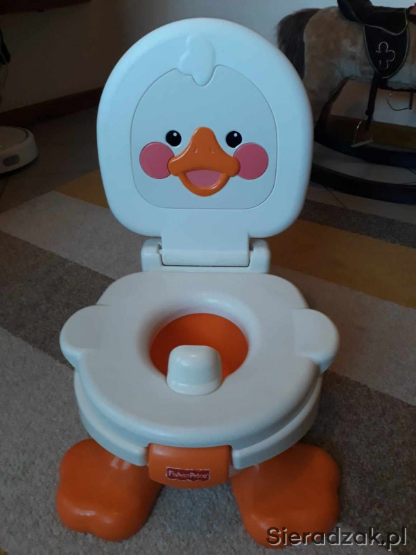 Śliczny grający nocniczek od Fisher Price. Jest przede wszystkim bardzo stabilny, nie ma szans by zawartość sie rozlała. Deskę mozna wykorzystac jako nakładkę na zwykły sedes. Dodatkowa wkładka dla chłopców. Łatwe opróżnianie i mycie nocniczka - wystarczy wyjąć pomarańczowy element ze środka. W późniejszym czasie nocnik może służyć jako podest ułatwiający dostęp do umywalki lub stołeczek .Muzyczna nagroda dla brzdąca za prawidłowe skorzystanie z nocnika, będzie działała motywująco do podejmowania kolejnych prób.