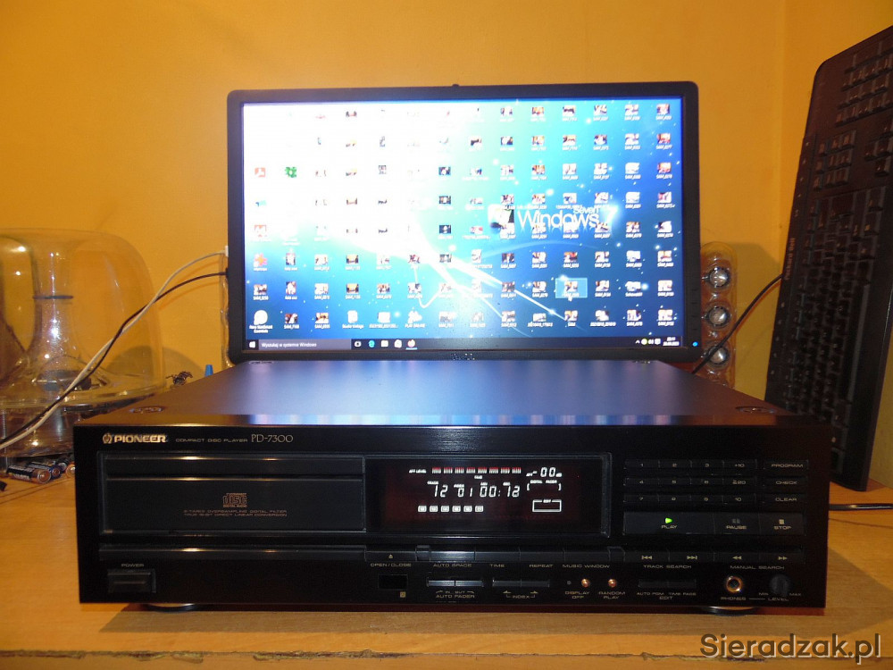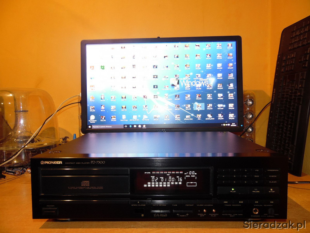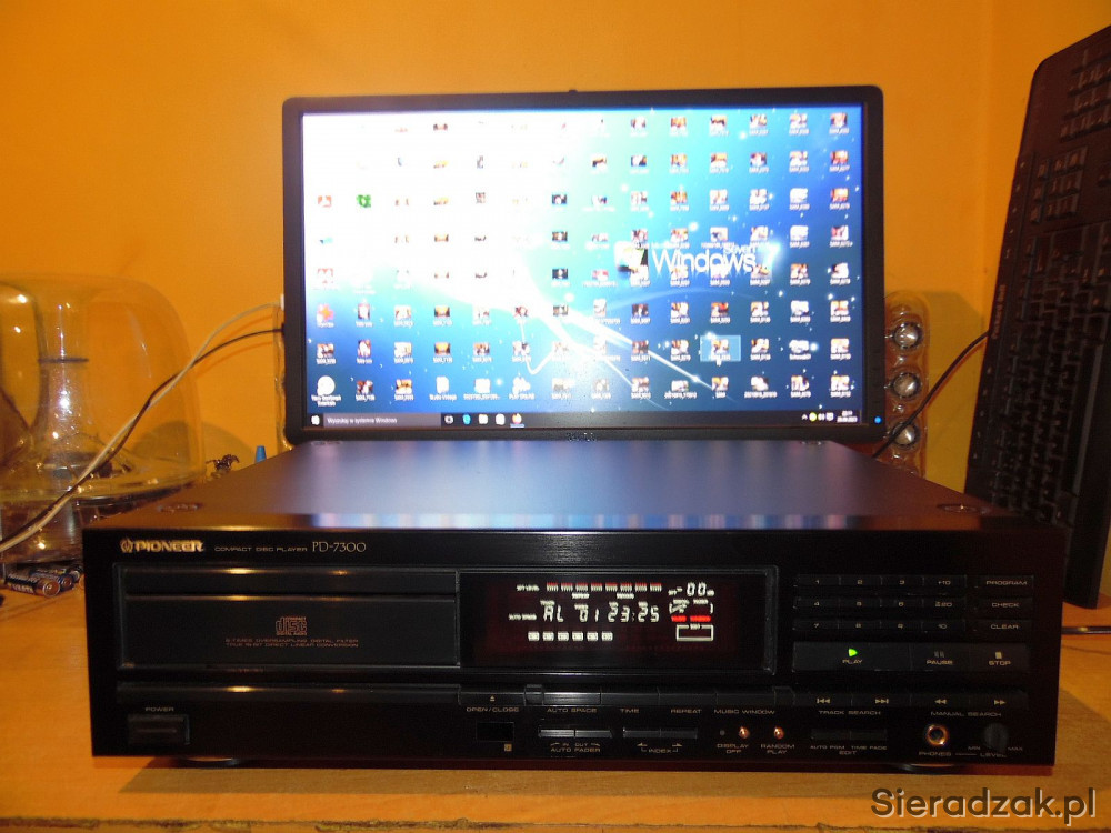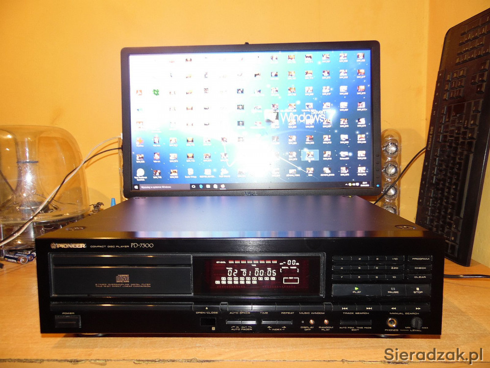 Jeden z najwyższych modeli z ogromnym kolorowym wyświetlaczem. Legendarny odtwarzacz CD Pioneer PD 7300. W pięknym stanie. Wyświetlacz wyraźny, czysty, Odtwarza płyty CD i CD-R. Odczyt płyty błyskawiczny. Mechanizm głowicy bezgłośny elektro-magnetyczny. Głowica laserowa PWY 1011. Brak pilota.w komplecie.