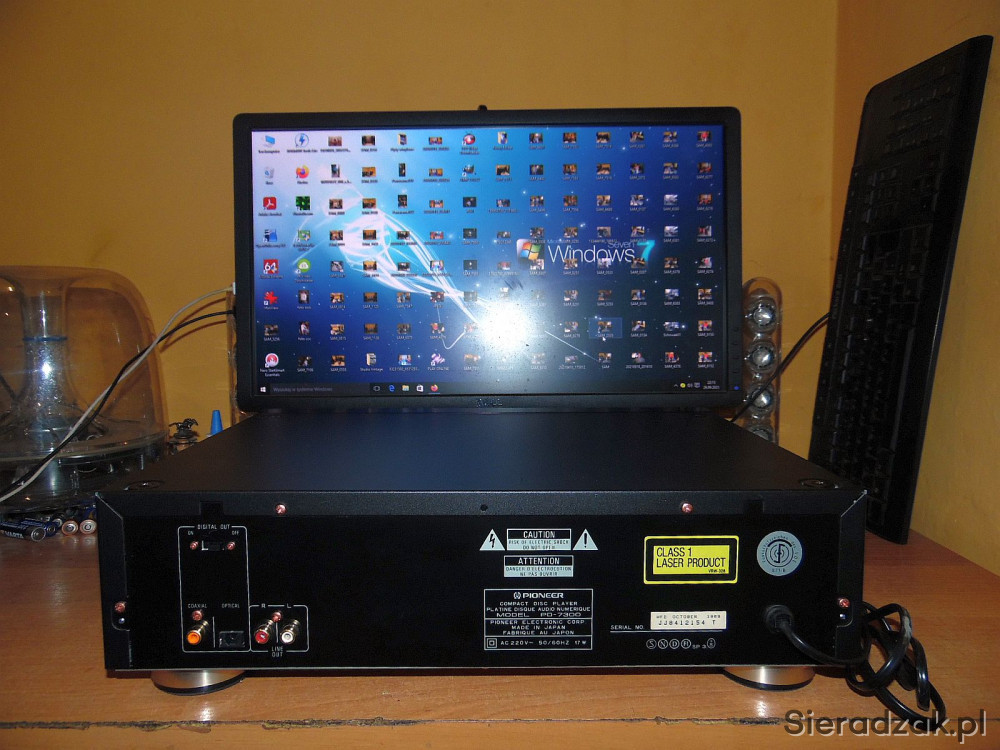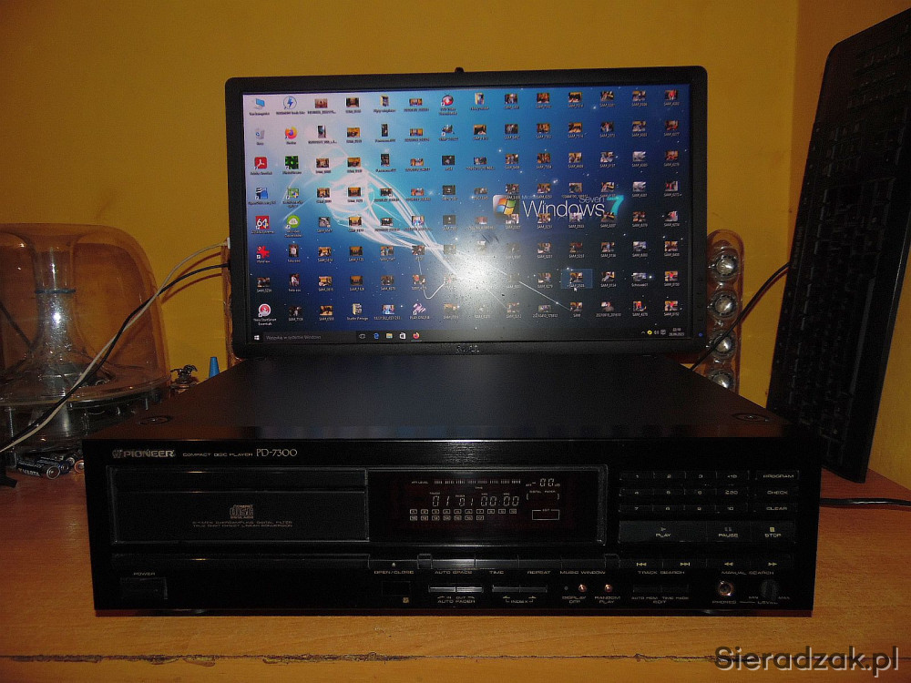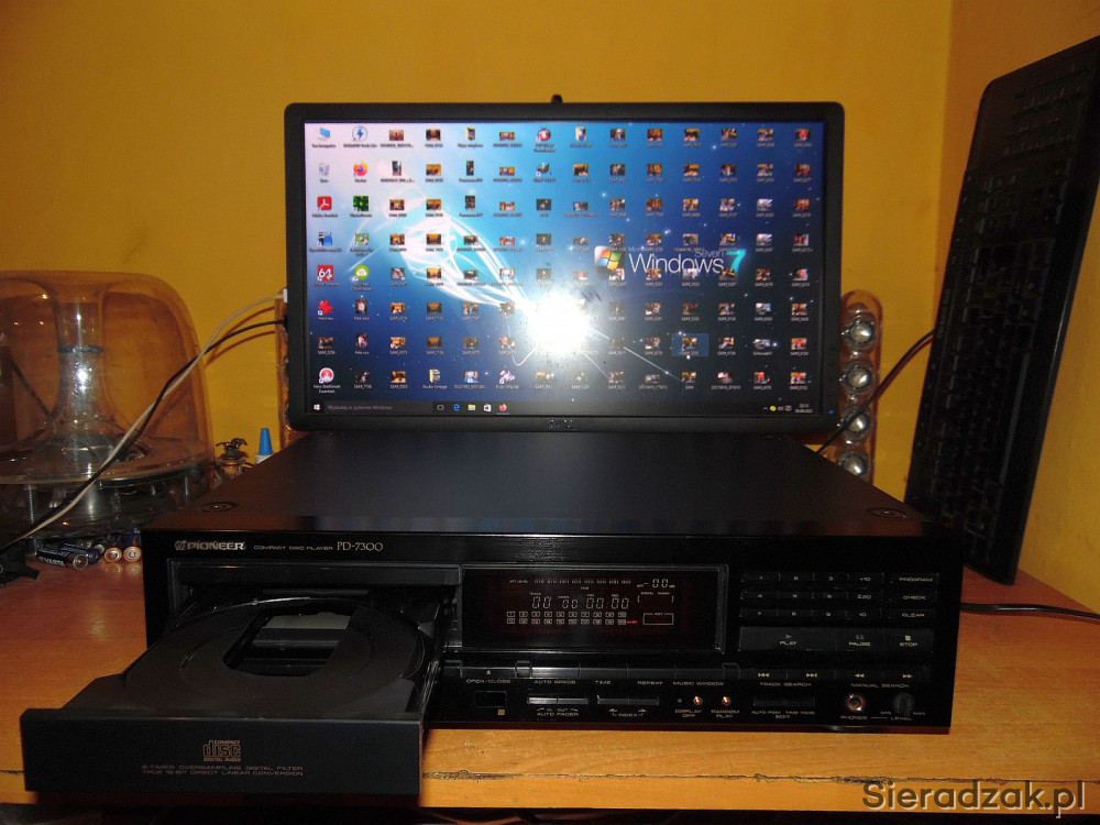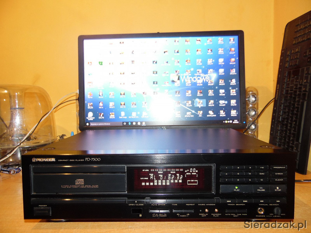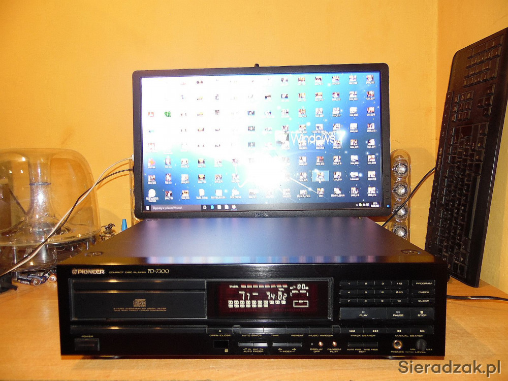 Jeden z najwyższych modeli z ogromnym kolorowym wyświetlaczem. Legendarny odtwarzacz CD Pioneer PD 7300. W pięknym stanie. Wyświetlacz wyraźny, czysty, Odtwarza płyty CD i CD-R. Odczyt płyty błyskawiczny. Mechanizm głowicy bezgłośny elektro-magnetyczny. Głowica laserowa PWY 1011. Brak pilota.w komplecie.