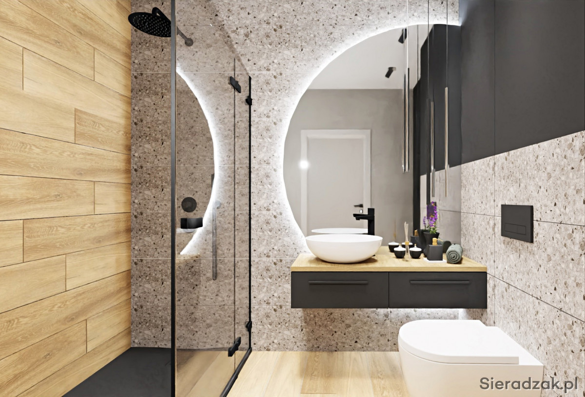 Parter (44,9 mkw): wiatrołap-3,6 mkw, salon+ kuchnia-38,7 mkw, wc-2,6mkw, taras ok. 17mkw. Istnieje możliwość wydzielenia małego pokoiku (widocznego jak na rzucie parteru)