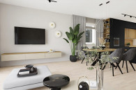 Apartament w bardzo kameralnej zabudowie jednorodzinnej (w budynku w zabudowie bliźniaczej znajdują się 4 apartamenty), z tarasem i ogródkiem oraz dwoma miejscami parkingowymi.