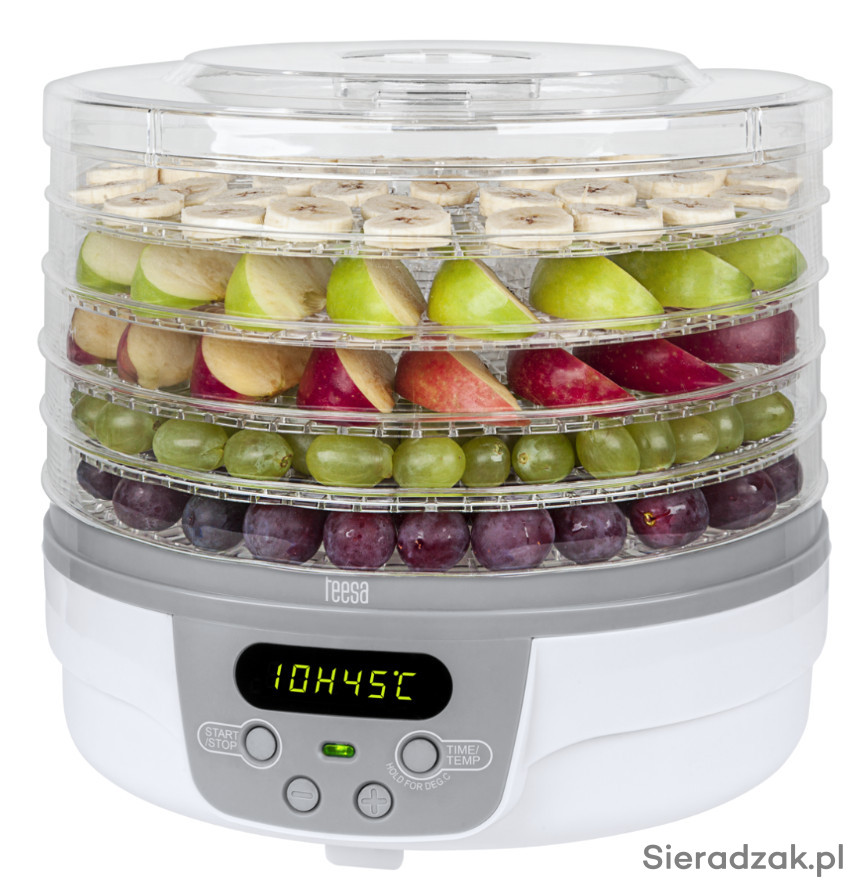 Suszarka TSA3031 została wyposażona w pięć sit o średnicy 32 cm, które pozwolą na suszenie nawet 5 kilogramów żywności. Teraz, niezależnie od pory roku, możesz cieszyć się dawką naturalnych witamin lub zaskoczyć znajomych zdrową przekąską podczas wspólnych spotkań.