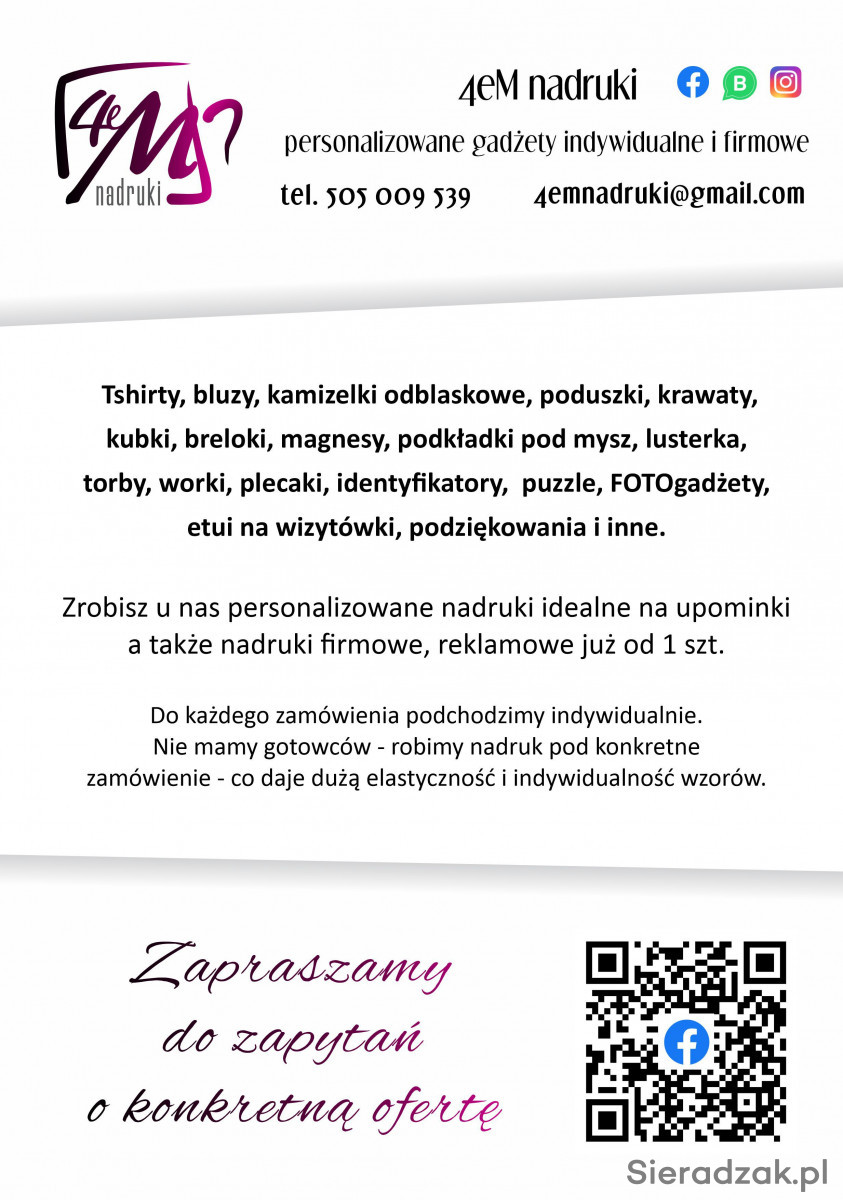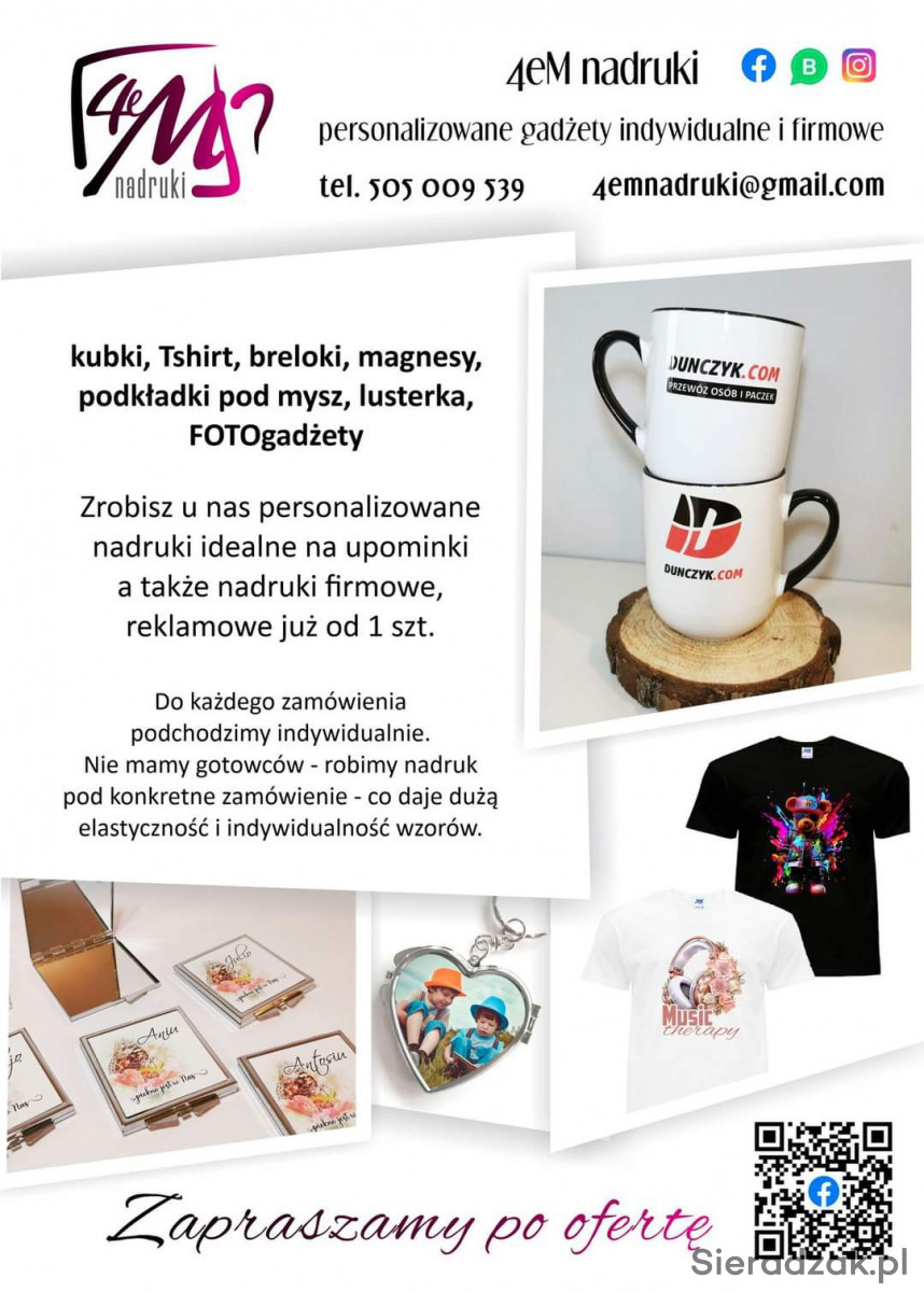 Oferujemy dowolne nadruki na gadżetach - Kubki, koszulki, torby, magnesy, breloki, puzzle, podkladki pod mysz i inne