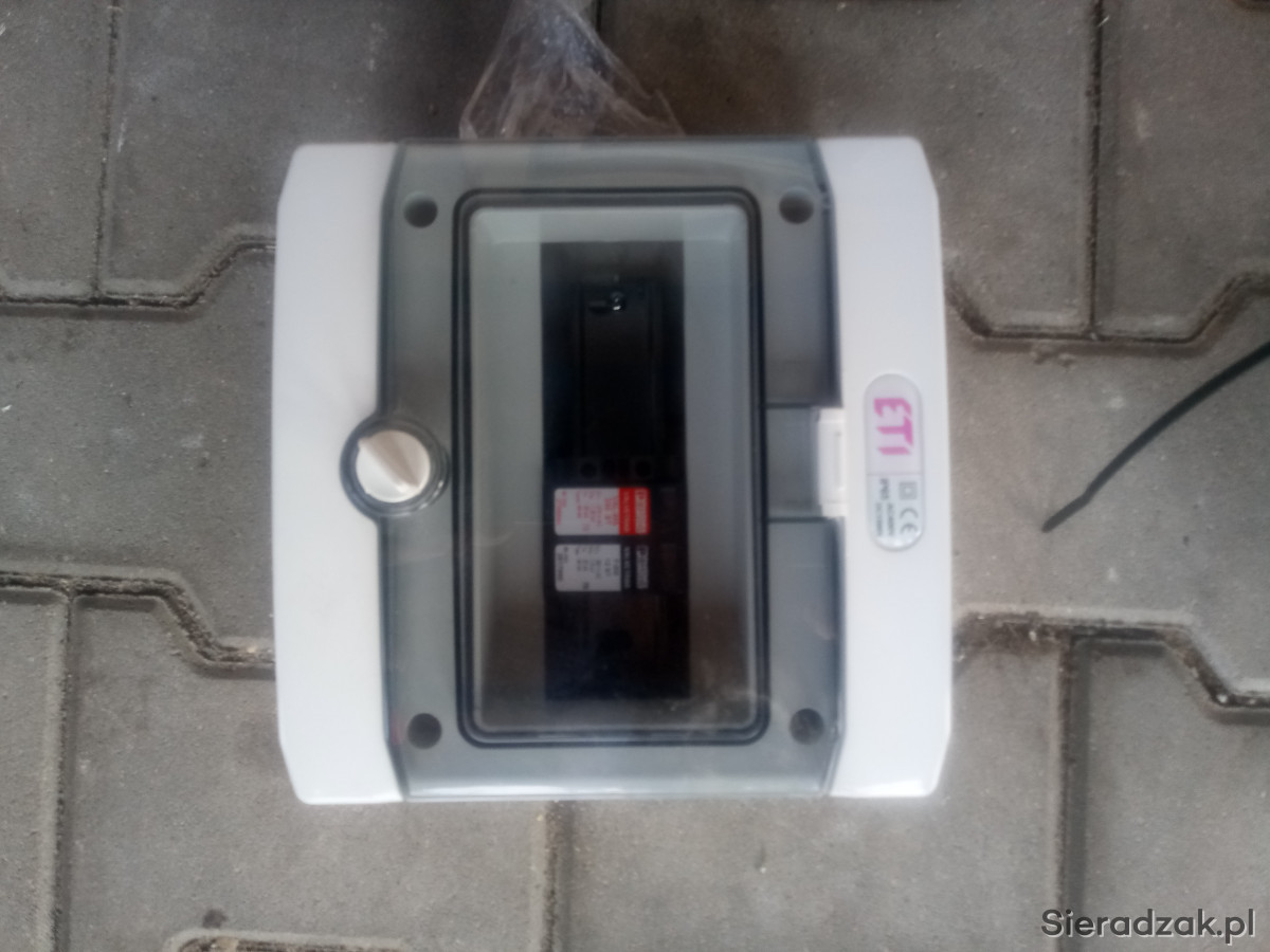 Sprzedam nowe; ETI ROZDZIELNICA HERMETYCZNA NATYNKOWA 1x8 IP65, 50zł, z dwoma ogranicznikami przepięć czerwony 100zł, czarny 50zł., razem 200zł niezbędne do fotowoltaiki i nie tylko. Polecam!!!
