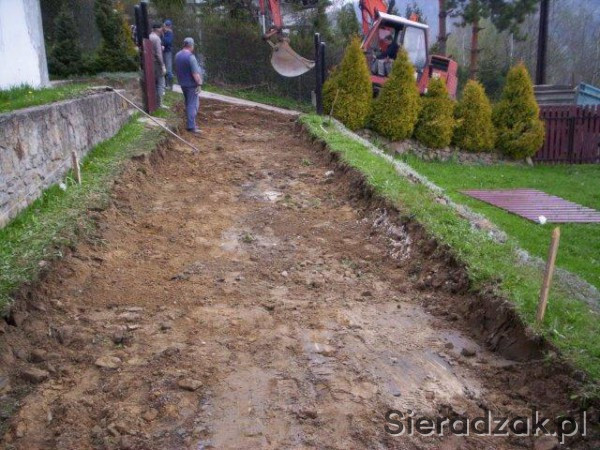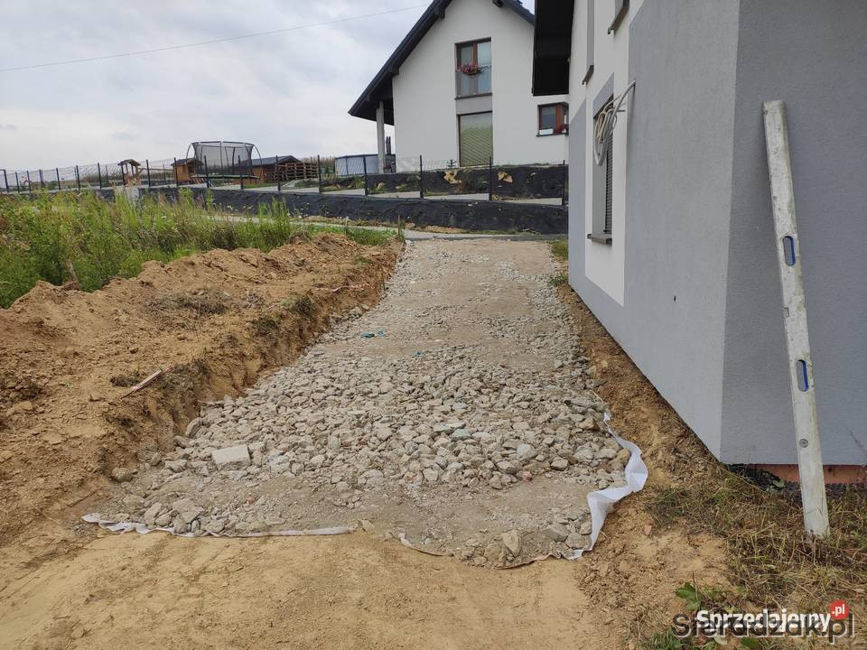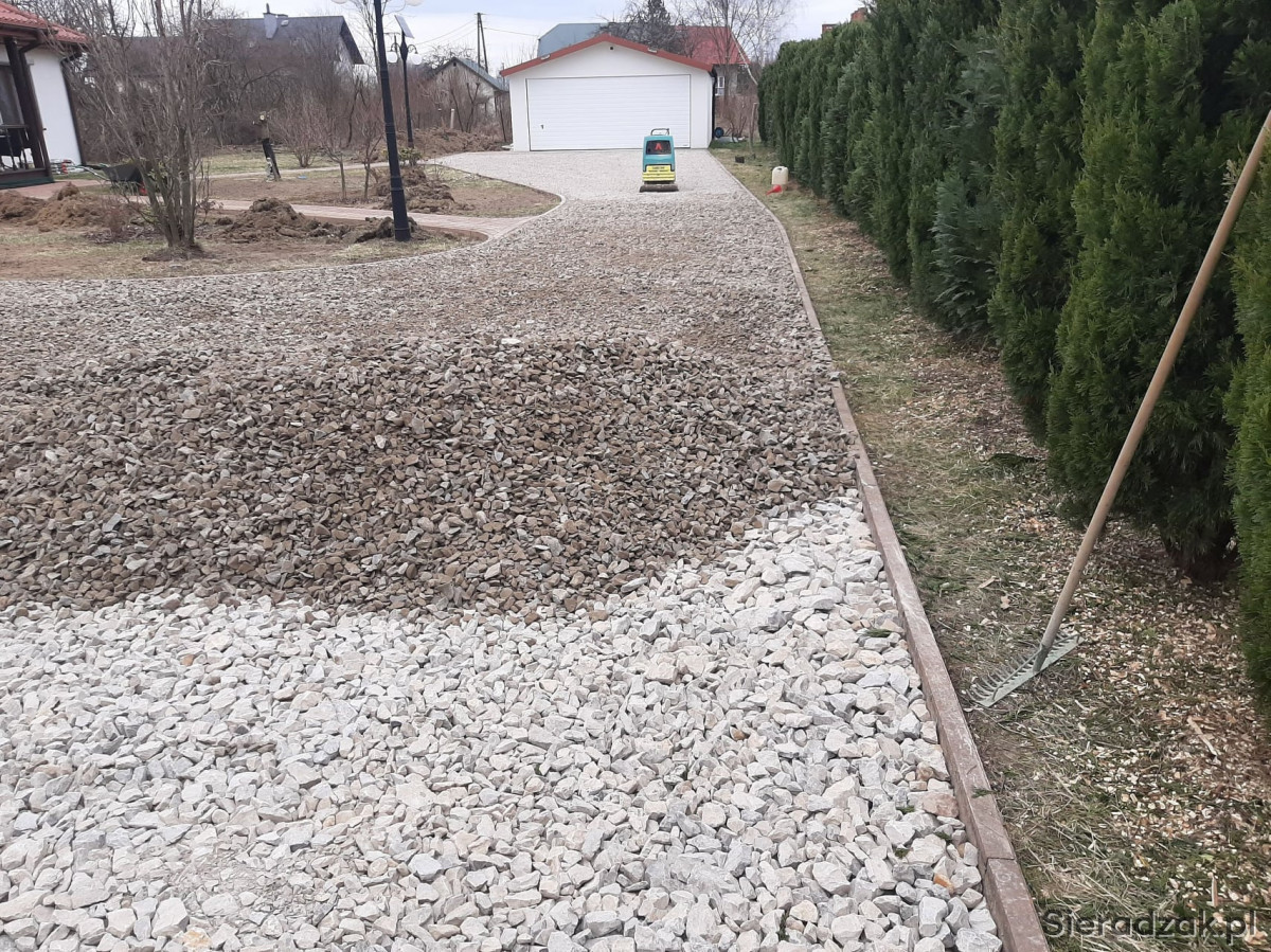 Wykonamy podbudowę pod kostkę brukową z kamienia od korytowania po nawiezienie kamienia i utwardzenie zagęszczarką 500 kg