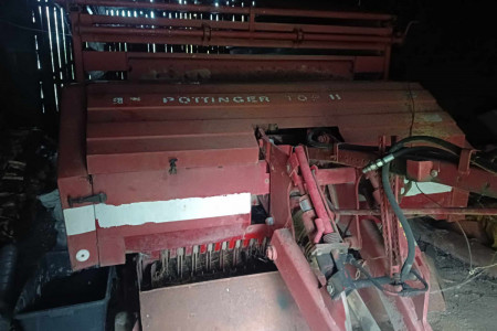 Przyczepa wyposażona w noże hydrauliczny podbieracz i podnoszenie przy wjeździe na pryzmę szerokie ogumienie stan dobry garażowania. Marka przyczepy to potinger top
