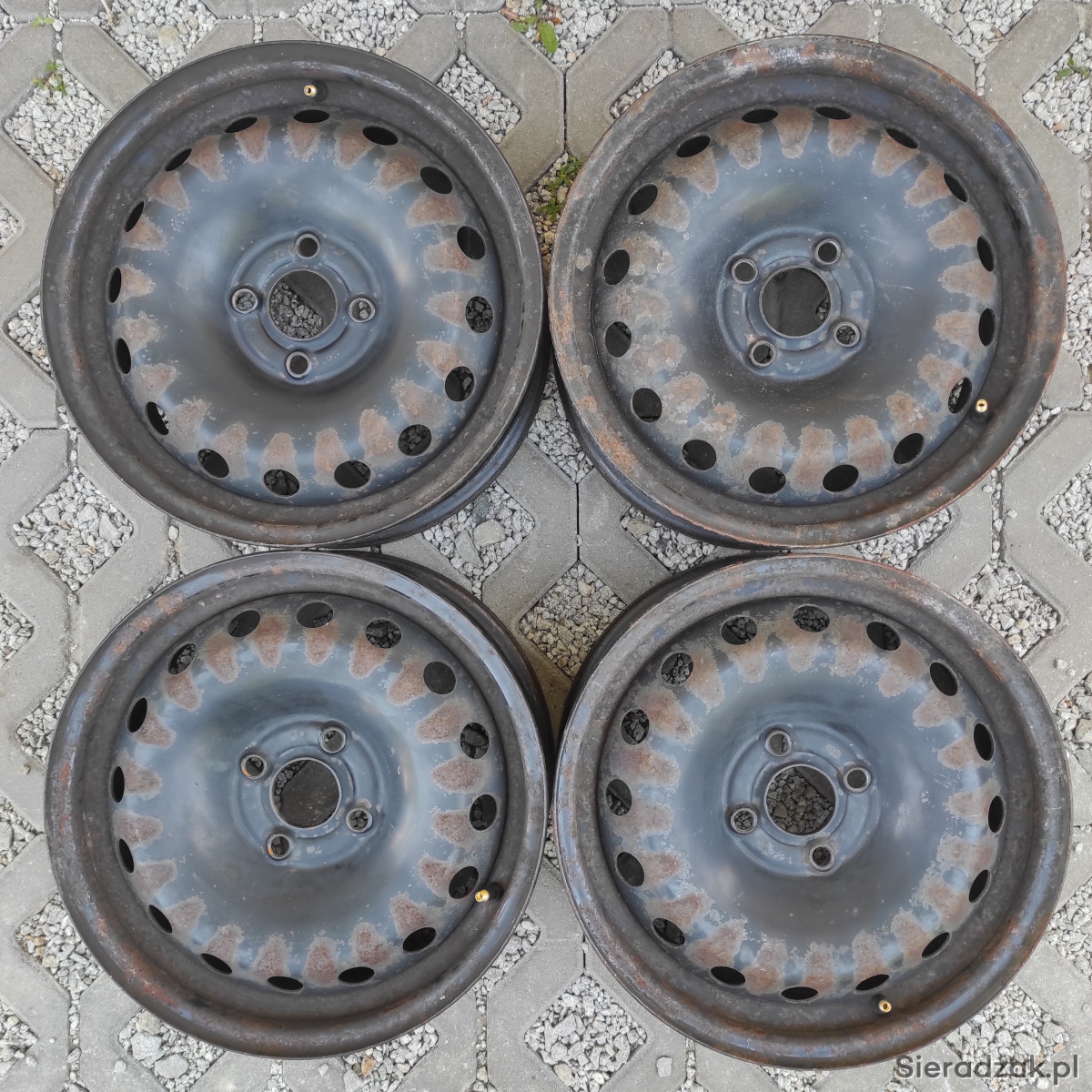 4x felgi stalowe 15" 4x100 6Jx16 ET43, otwór centralny 56,6mm. Felgi w dobrym stanie jak na zdjęciach, sprawdzone na wyważarce, proste. Nowe zawory powietrza.