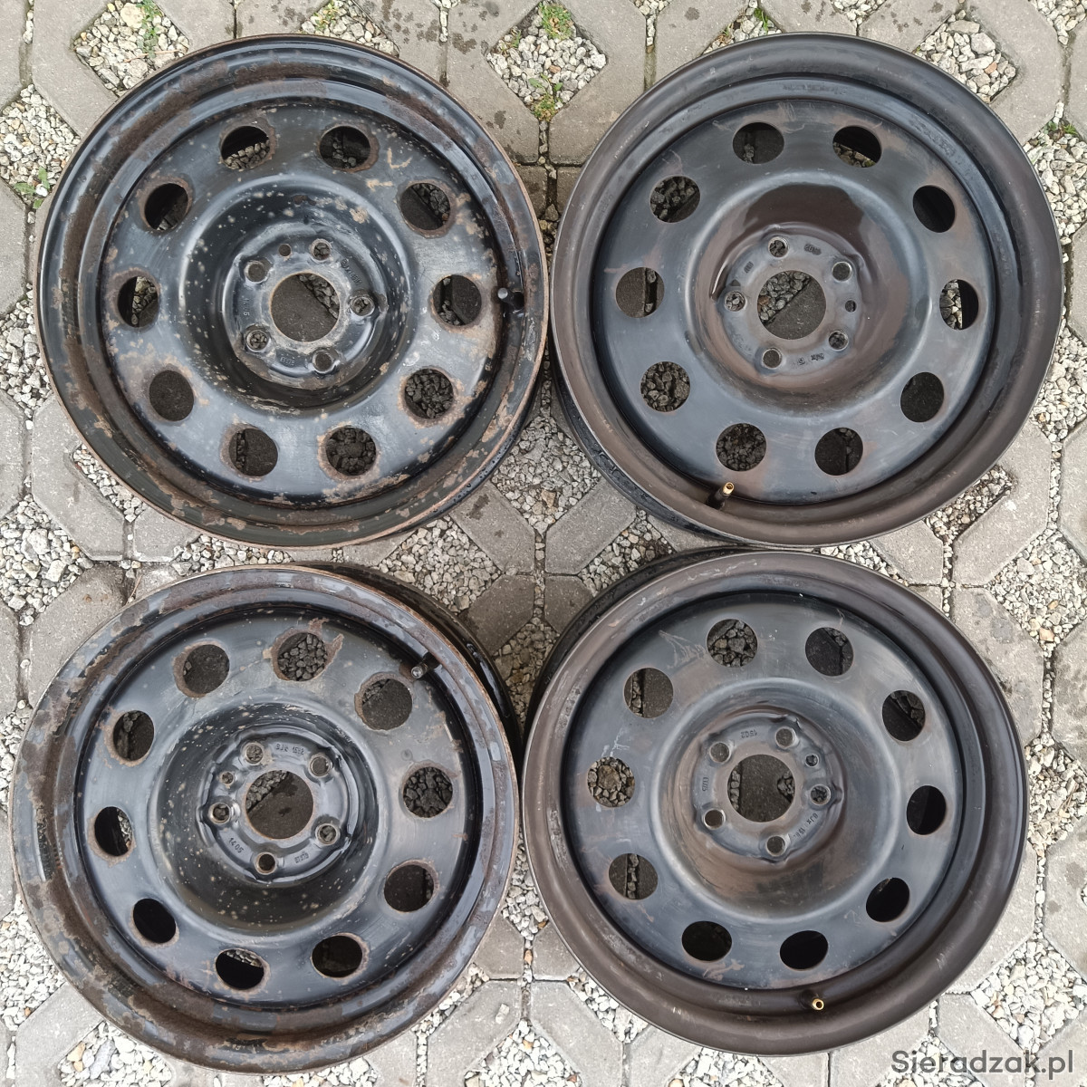 4x felgi stalowe 15" 5x98 6Jx15 ET37,5, otwór centralny 58,1mm. Felgi w dobrym stanie jak na zdjęciach, sprawdzone na wyważarce, proste. Nowe zawory powietrza.
