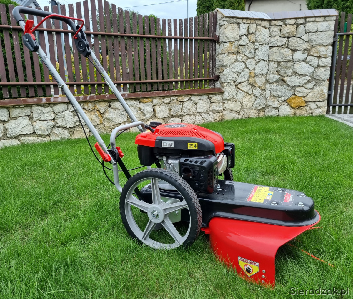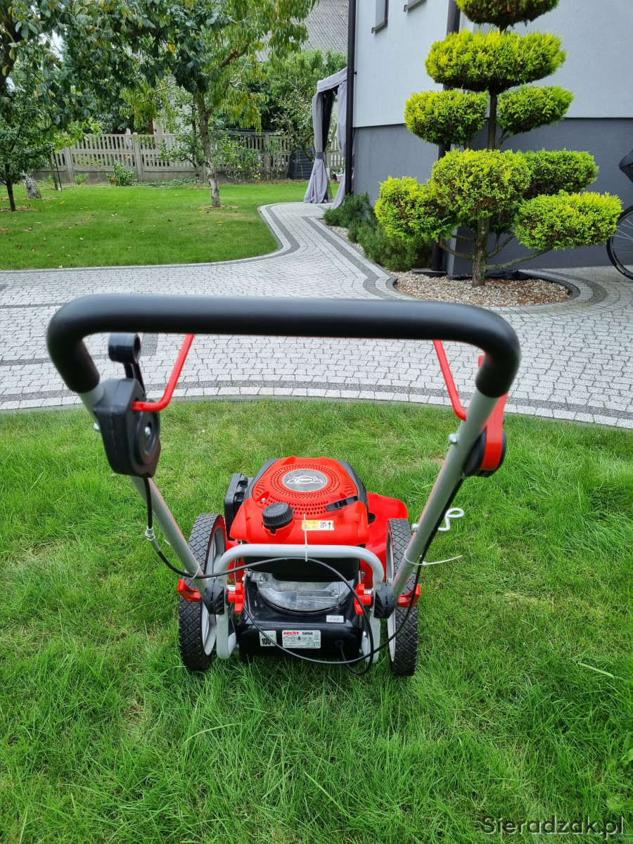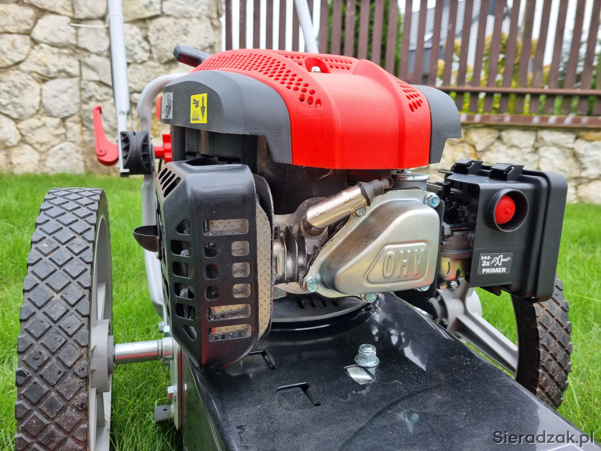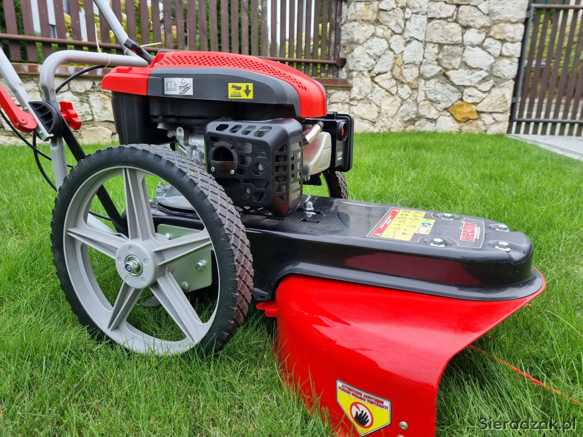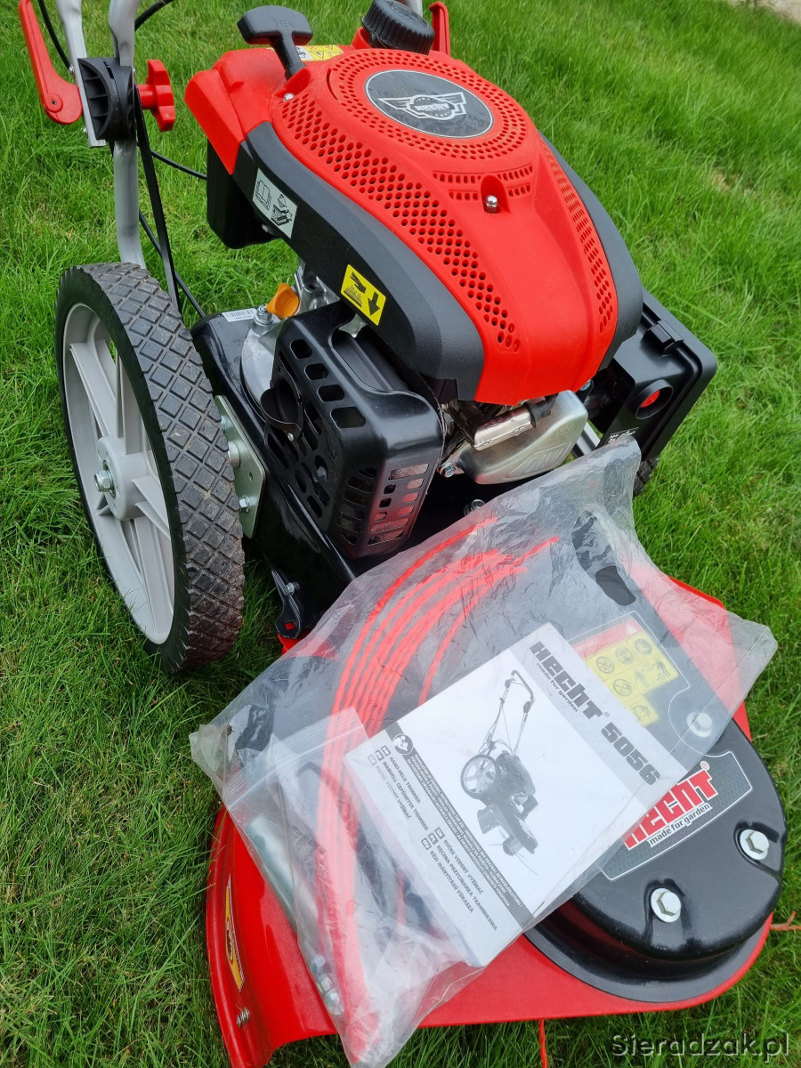 HECHT 5056 to zmotoryzowana kosiarka łańcuchowa bez napędu przeznaczona do koszenia ogrodów z częściowo zarośniętymi trawami i niewielkimi zarostami. Do napędu kosiarki wykorzystywany jest czterosuwowy silnik spalinowy HECHT o pojemności 175 cm3. Kosiarka wyposażona jest w duże 14" koła, dzięki czemu jest bardzo łatwa w obsłudze. Szerokość robocza urządzenia to 56 cm. Wysokość koszenia można regulować do 42,8 / 61,8 101,3 mm. Waga 33 kg. Wykaszarko-kosiarka kupiona w zeszłym roku do zrobienia porządku na działce, użyta jeden raz. Aktualnie stoi i się kurzy w garażu w związku z czym decyzja o sprzedaży. Sprzęt praktycznie nowy, znikome ślady użytkowania i jeszcze rok gwarancji. Cena w sklepie 1899,00 zł. Odbiór osobisty w Sieradzu lub po uzgodnieniu w Kaliszu. Polecam.
