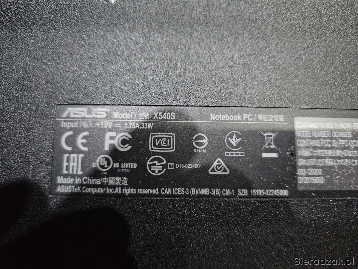 mam do sprzedania używany, sprawny laptop Asus X540S, posiada ekran o wielkości 15,6 cala, WiFi działa,system Windows 10 , w zestawie oryginalny zasilacz marki Asus do tego laptopa z przejściówką.