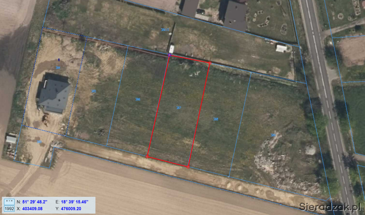 Możliwość zakupu z działką sąsiednią 388 o powierzchni 1347 m2.