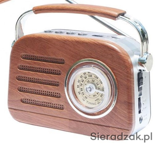 Radio odbiera w częstotliwościach AM i FM – pozwala odtwarzać muzykę z wybranej stacji radiowej. Radio zostało także wyposażone w obrotową antenę teleskopową oraz potencjometr regulacji głośności. Radio jest zasilane bateryjnie, sieciowo i akumulatorowe. Urządzenie ma oryginalny wygląd w stylu retro i wyposażone jest również w odbiornik Bluetooth, wejścia USB pendrive oraz microSD.