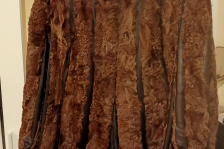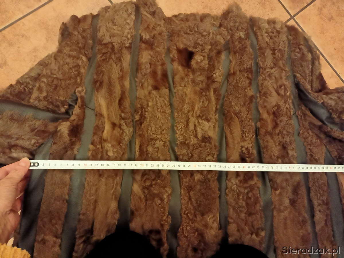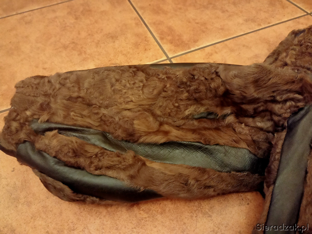 Futro w bardzo dobrym stanie. Bez śladów wytarcia. Połączenie skór z łapkami karakułowymi.