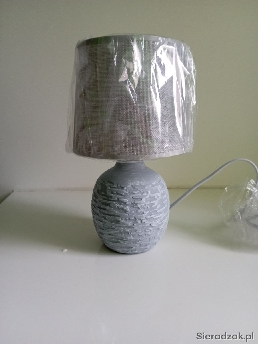 Lampa stołowa lampka nocna - 27 cm - szara - ceramiczna podstawa lampy ze strukturą - lniany abażur.