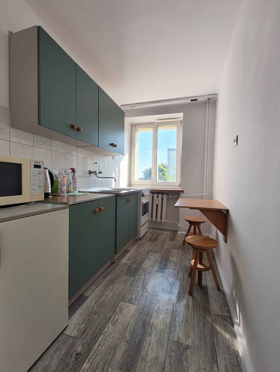 Mieszkanie o powierzchni 29m, z balkonem, umeblowane. Blok z cegły, grube ściany, ocieplony.