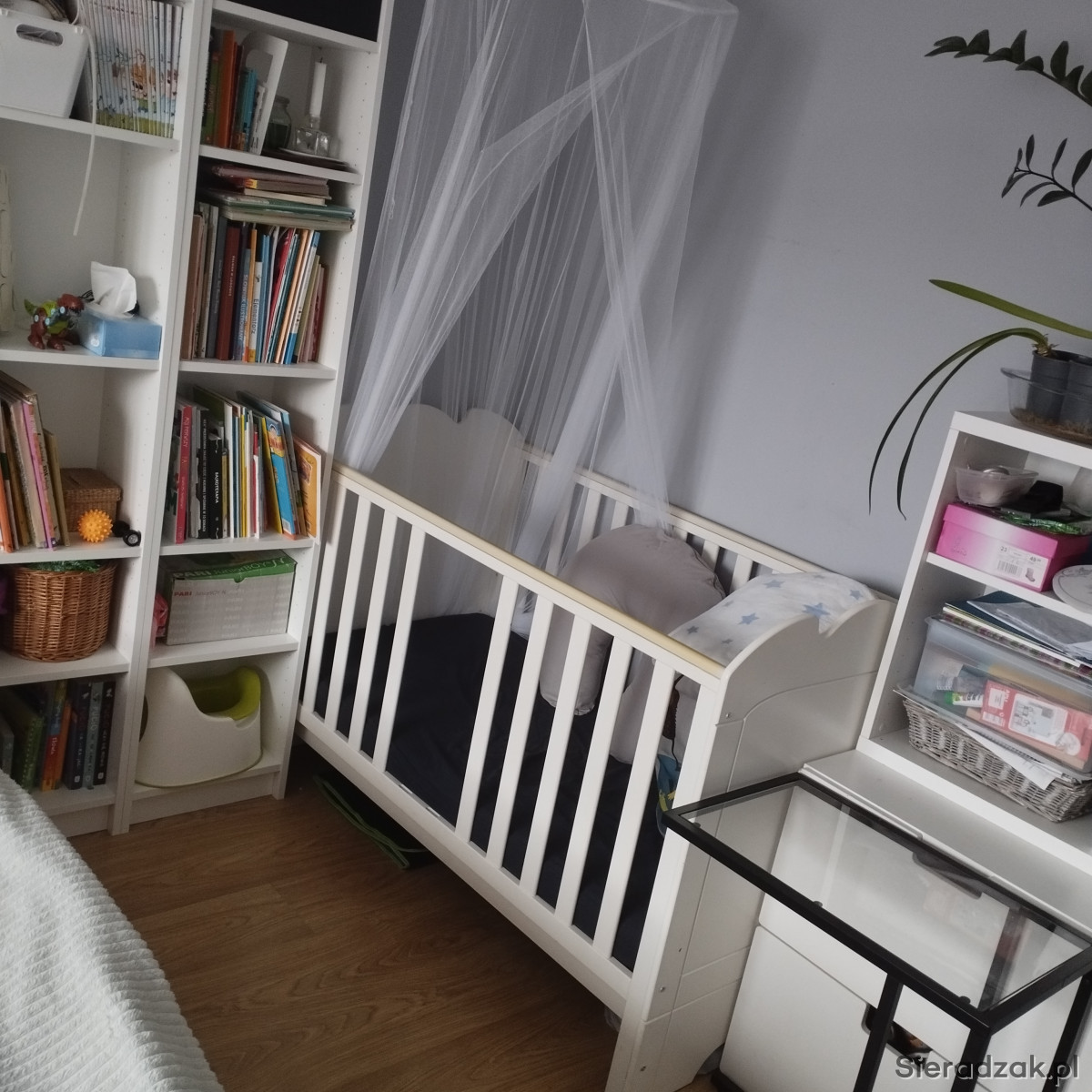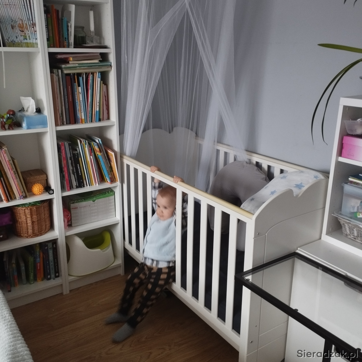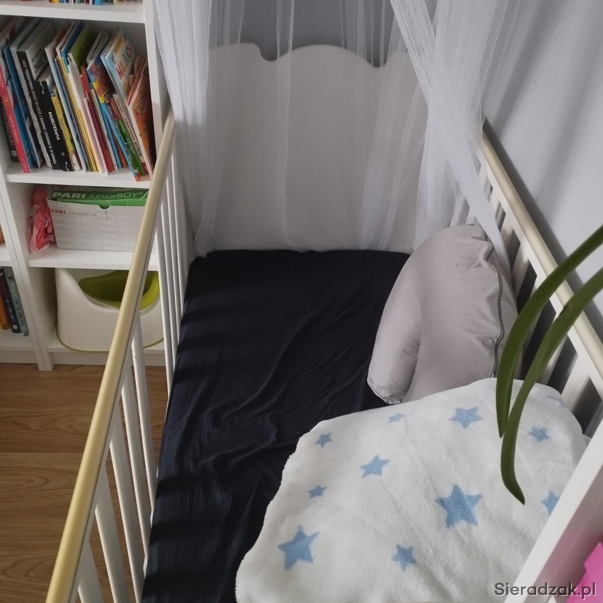 Sprzedam łóżeczko dziecięce drewniane, łatwe w montażu i demontażu. S142xG73xW93(w najwyższym punkcie). Wysokość materaca regulowana w 3 wysokościach. Brakujące szczebelki są wyjmowane i są w zestawie.