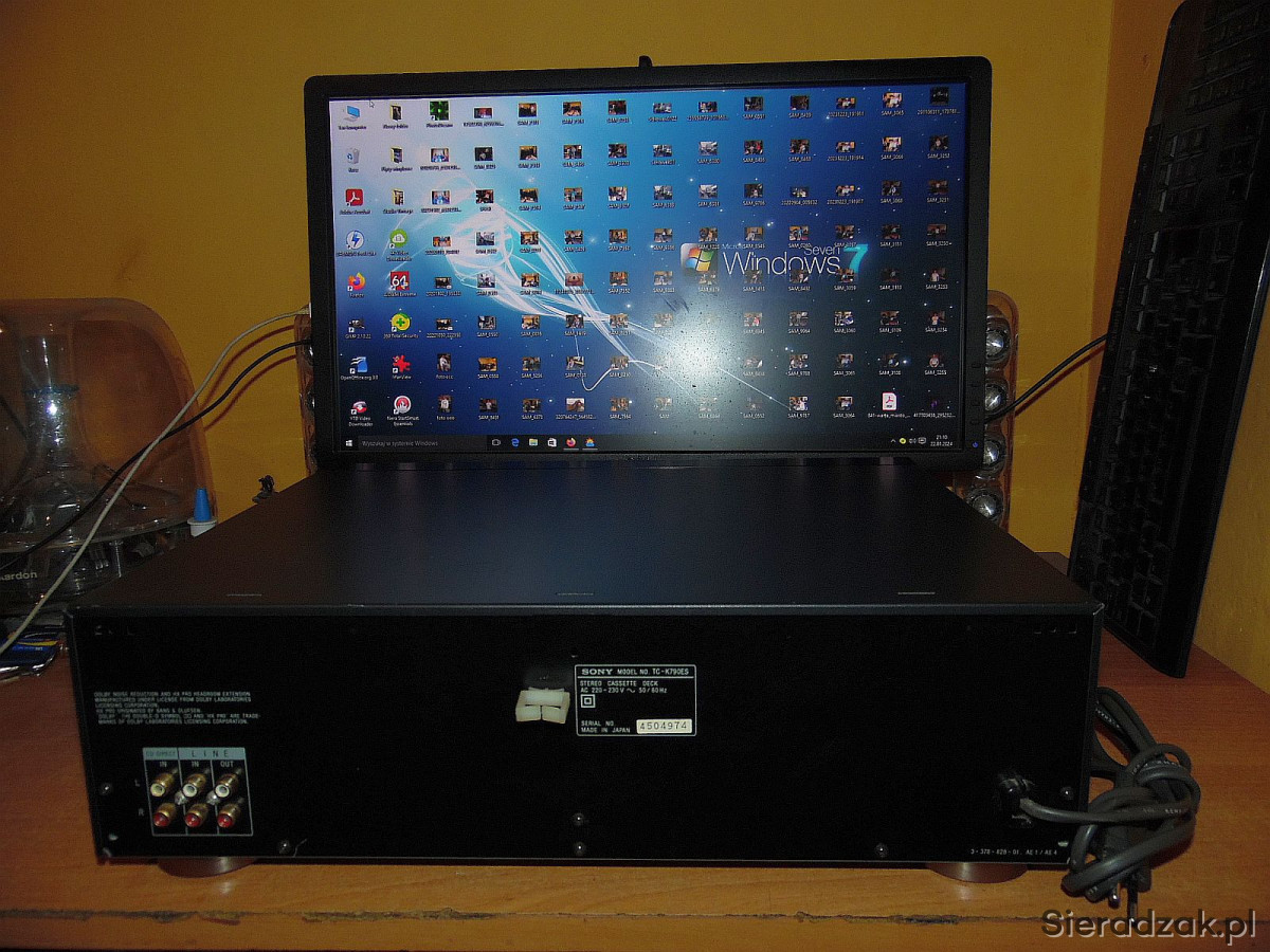 Magnetofon sprawny w stanie jak na foto. Odtwarza przewija w obu kierunkach nagrywa. Piękny stan. Kilka rys u góry stał na nim CD. Polecam coraz ich mniej na rynku wtónym.