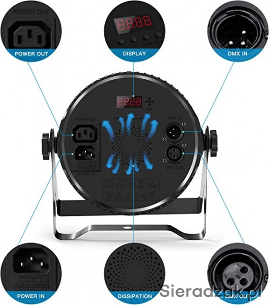 Dostępne też inne zestawy oświetleniowe, reflektory par led, listwy bar, głowy ruchome, stroboskopy, wytwornice dymu i baniek, statywy oświetleniowe.