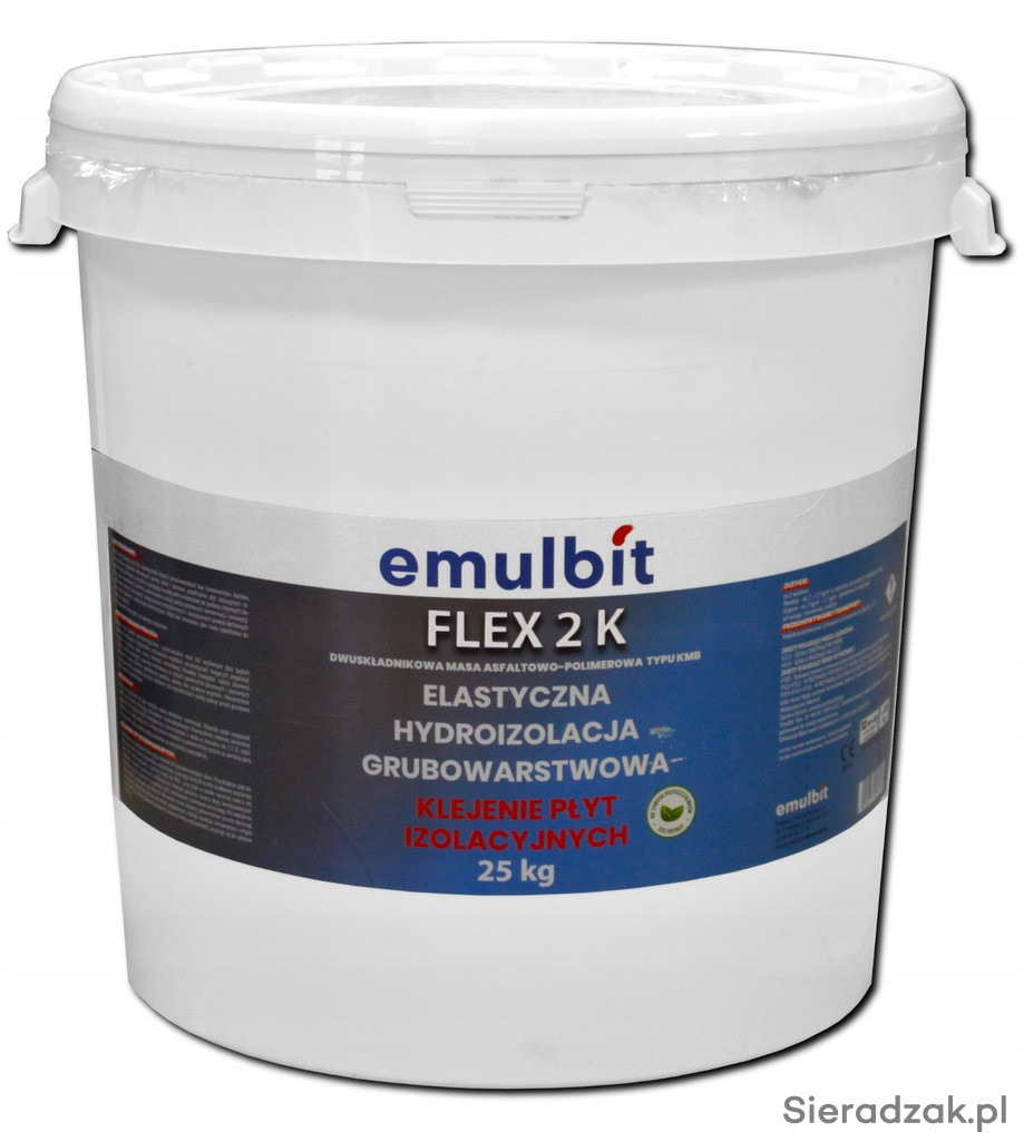 Bezrozpuszczalnikowa grubowarstwowa hydroizolacja przeciwwodna typu KMB. Dzięki wysokiej zawartości suchej masy oraz składnikowi utwardzającemu tworzy mocną i szczelną powłokę zabezpieczają przed ciśnieniem wody napierającej. Emulbit Flex 2 K służy do zabezpieczenia przed wodą podziemnych części budynków.