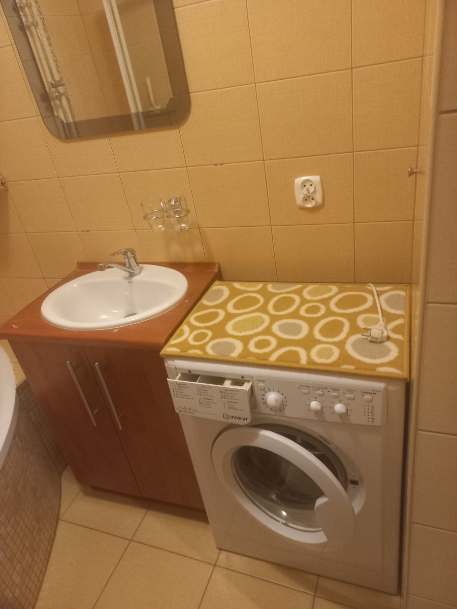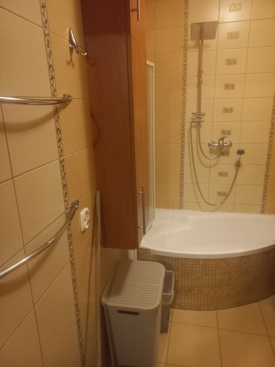 Mieszkanie jest bardzo ciepłe i wyposażone w sprzęty (pralka, lodówka, kuchnia gazowa z piekarnikiem) oraz meble. Narożna wanna z parawanem prysznicowym. Dwa duże, ustawne pokoje plus umeblowana kuchnia. W oknach moskitiery.