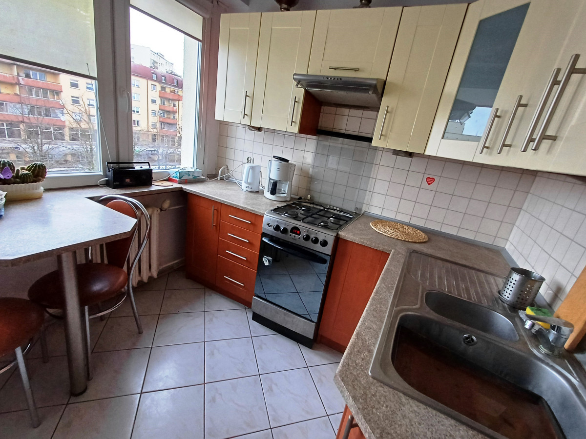 Mieszkanie dwustronnie rozkładowe , składające się z dużego ( 26 m2 ), dobrze doświetlonego salonu, dwóch osobnych pokoi, kuchni, łazienki, osobnej toalety oraz przedpokoju. Mieszkanie przestronne, dobrze nasłonecznione (okna z dwóch stron), zadaszony balkon na teren zielony .