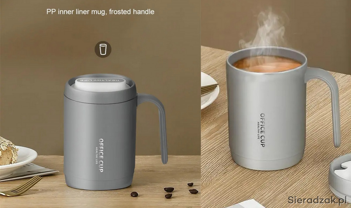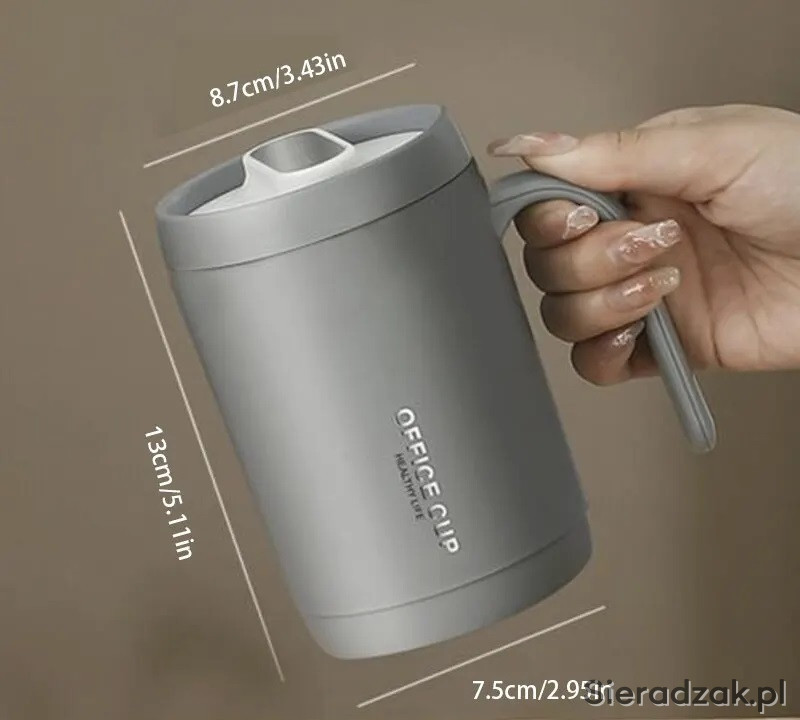 Kubek ma dużą pojemność 0,5L, dzięki czemu idealnie nadaje się do picia dużych ilości wody, herbaty lub kawy.