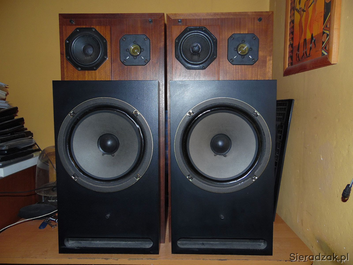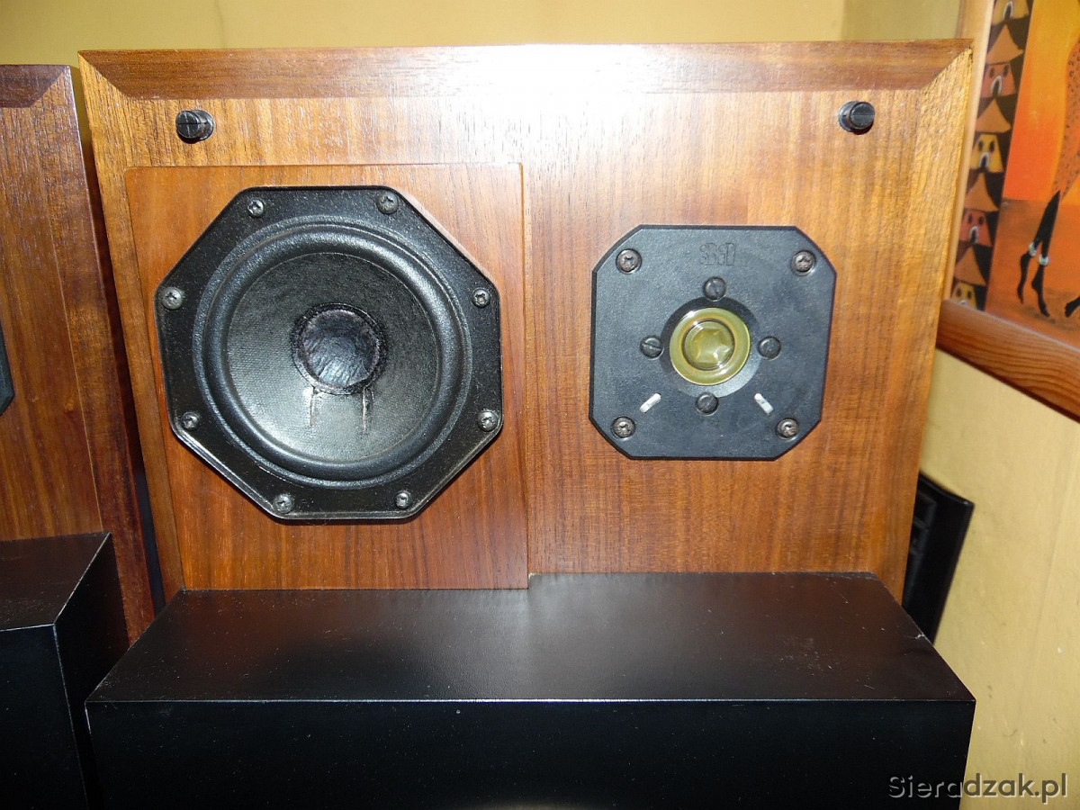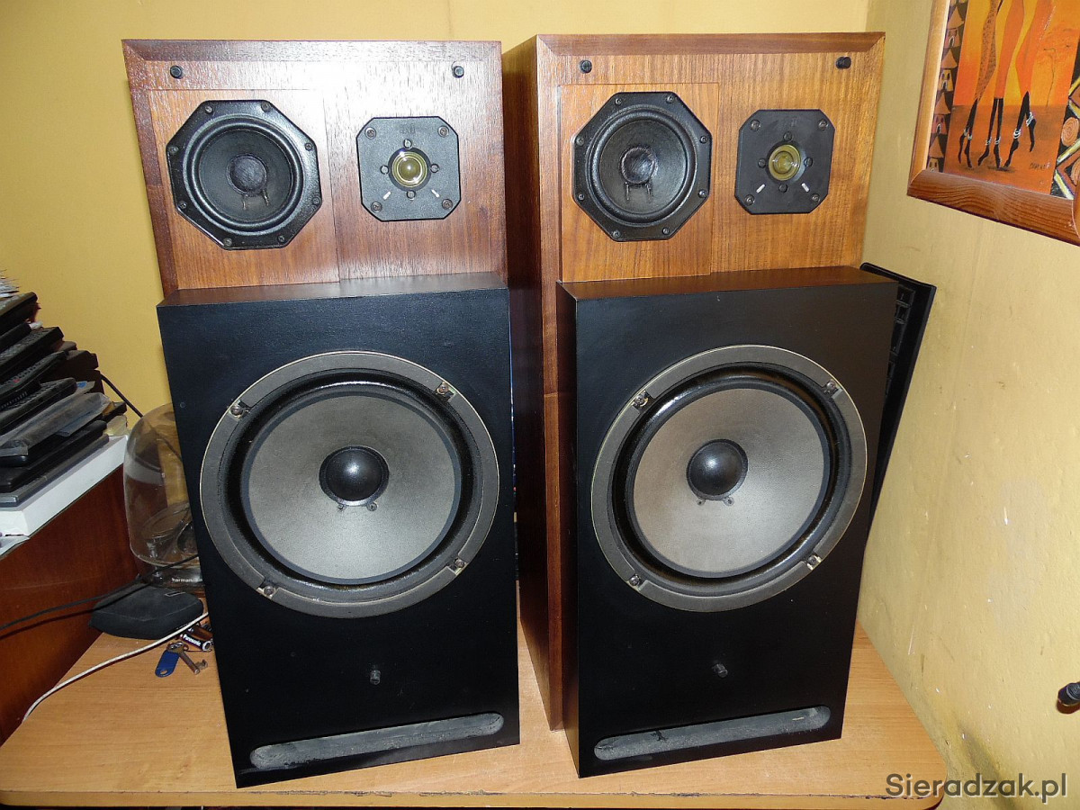 Kolumny w stanie jak na foto Grają rewelacyjnie wysoka skuteczność 92dB idealne do lampy. W jednej kolumnie się wciśnięte kopółki głośników średnio i wysotonowego. Nie ma to wpływu na dźwięk. Maskownice są w komplecie. Wejścia DIN2 starego typu. . Polecam.