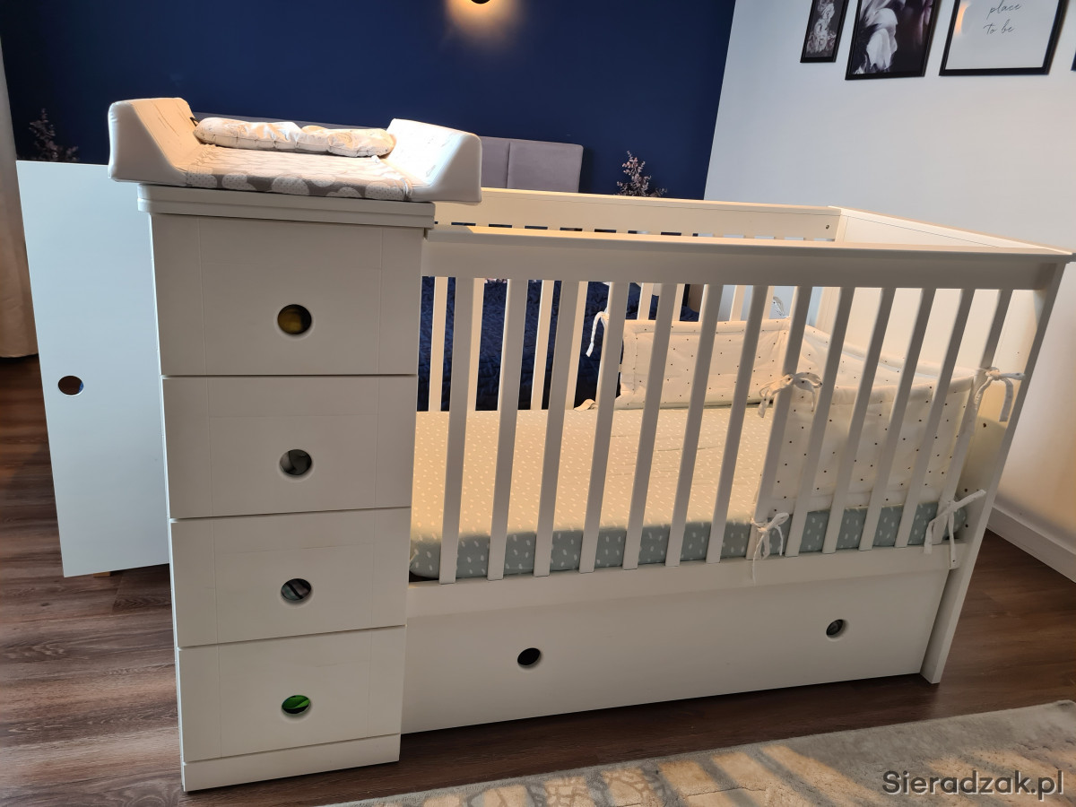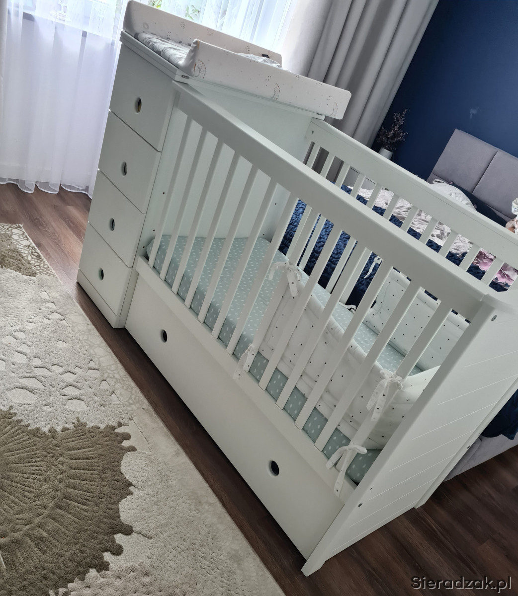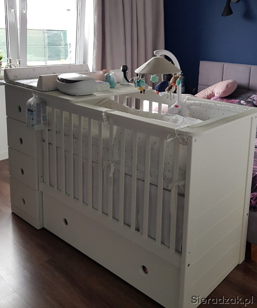 -Możliwość umieszczenia komody oraz szafki po lewej lub prawej stronie łóżeczka