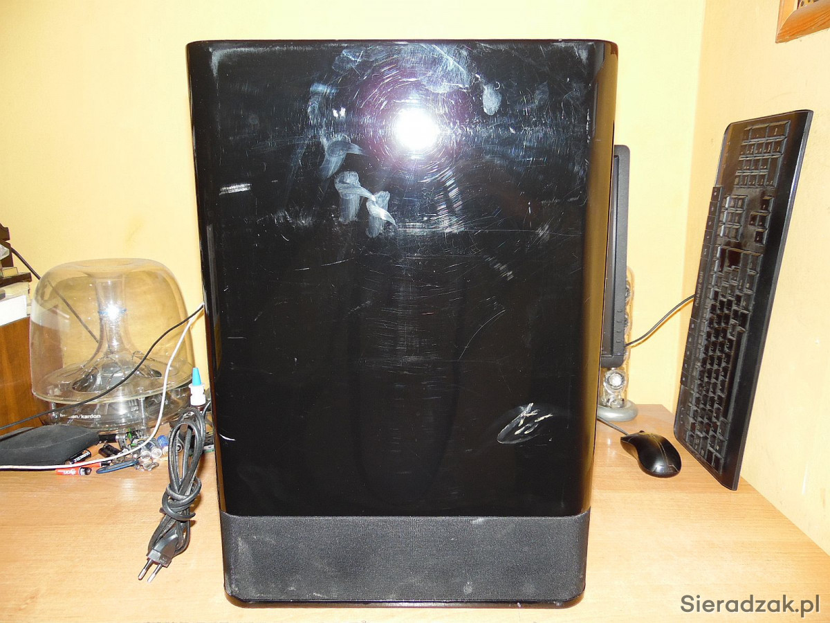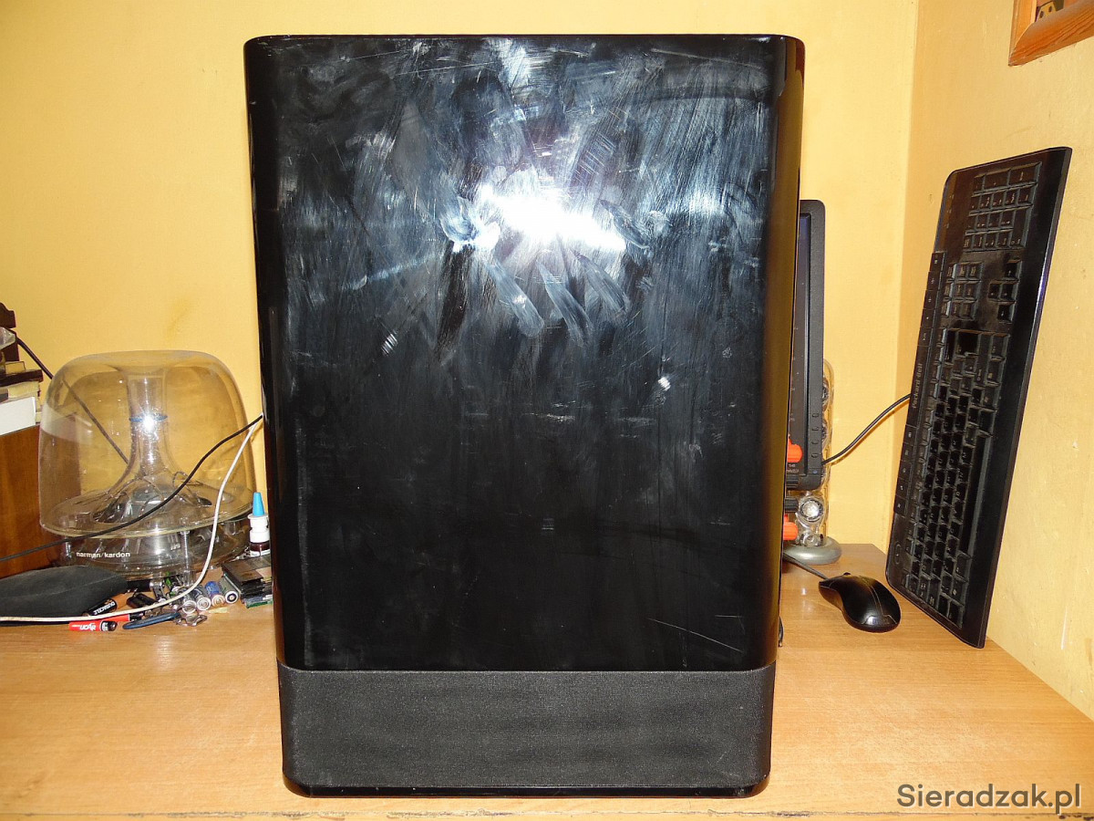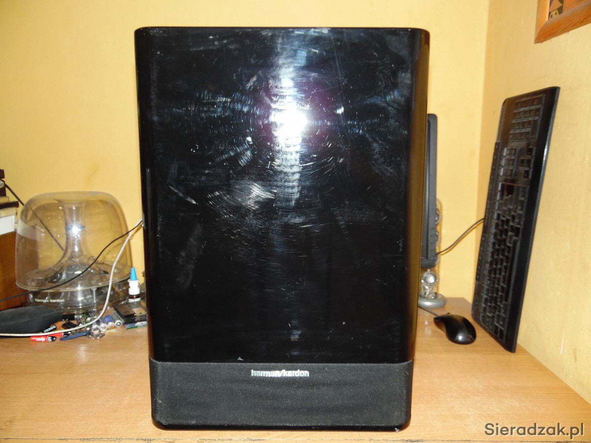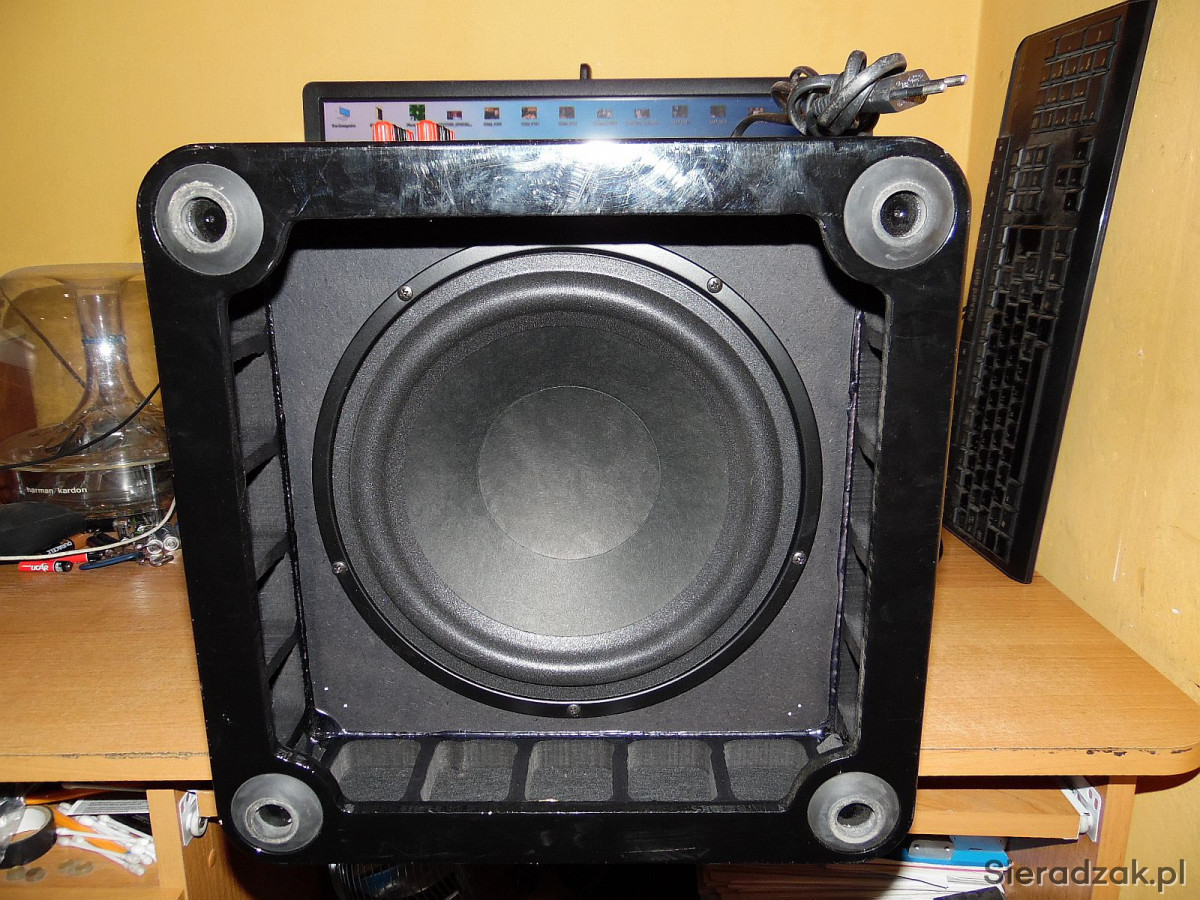 Subwoofer sprawny stan jak na foto. W czarnej obudowie piano lakierowanej na wysoki połysk ciężko zrobić mu zdjecia ale w realu wygląda lepiej niż na nich. Polecam.