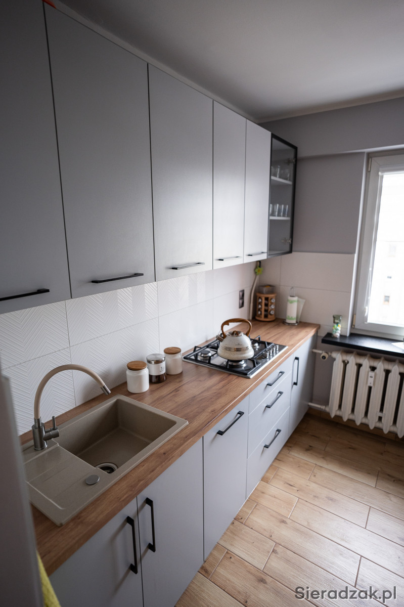 Kuchnia w 2023 r. przeszła generalny remont: nowe meble pod zabudowę oraz nowy sprzęt AGD jeszcze na gwarancji: płyta gazowa Electrolux, zmywarka w zabudowie Bosch, piekarnik Electrolux, pochłaniacz. Lodówka wolnostojąca. Na przedpokoju znajduje się duża szafa pod zabudowę oraz szafki na buty. Mieszkanie bardzo ciepłe, dwustronne.