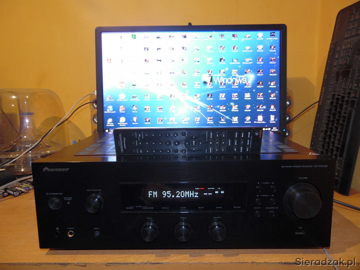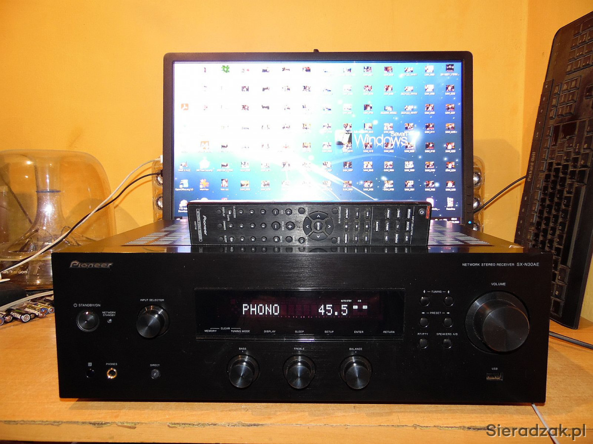 Odbiornik sieciowy Pure Audio z 2 x 110 W, zintegrowanym dwupasmowym WiFi, Spotify, TIDAL, Deezer, TuneIn, zintegrowaną technologią Chromecast, DTS Play-Fi, optycznym wejściem cyfrowym, wejściami Phono i Line. Dzięki mocnemu wzmacniaczowi 2 x 110 W, wyrafinowanym możliwościom połączeniowym dla tradycyjnych i nowoczesnych źródeł dźwięku, Pioneer SX-N30AE jest idealnym sercem dla Twojego zestawu muzycznego. Nawet jeśli nie posiadasz dodatkowych urządzeń źródłowych oraz nie masz pokaźnej kolekcji muzyki, ten odtwarzacz zapewni Ci wirtualny dostęp do muzycznego świata za jednym dotknięciem pilota. Wszystko dzięki dostępowi do serwisu Spotify, Tidal i Deezer oraz darmowego radia internetowego TuneIn, którym możesz sterować z intuicyjnej aplikacji mobilnej na swoim smartfonie Android lub iOS. Możesz też odtwarzać muzykę z mobilnych urządzeń przez technologię: Bluetooth, wbudowany Chromecast i DTS PlayFi. SX-N30AE oferuje zarówno analogowe, jak i cyfrowe wejścia, którymi podłączysz np. telewizor, konsolę do gier czy dekoder cyfrowy. Ponieważ nigdy nie wiadomo dokładnie, co przyniesie przyszłość, SX-N30AE możesz samodzielnie zaktualizować, gdy pojawi się dostępne nowe oprogramowanie.