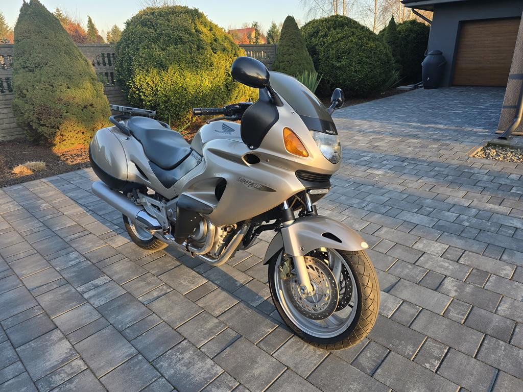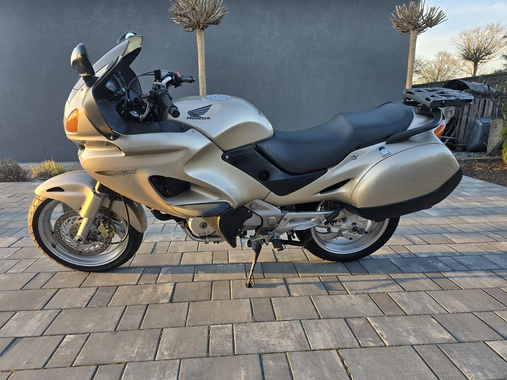 Do sprzedania ładna Honda NTV650 Deauville z 2000r. Motocykl świeżo sprowadzony z Niemiec. Honda bezwypadkowa i w oryginalnym lakierze. Wizualnie ładnie się prezentuje. Posiada normalne ślady użytkowania adekwatne do wieku motocykla. Oryginalny przebieg 26450km udokumentowany. Silnik, skrzynia i hamulce pracują jak należy. Silnik odpala bardzo ładnie zimny i ciepły. Honda świeżo po czyszczeniu gaźników w myjce ultradźwiękowej. Założony został również nowy żelowy akumulator i nowy filtr powietrza. Na motocykl wystawiam fakturę. Kupujący zwolniony z opłaty skarbowej. Zapraszam na oględziny i jazdę próbną. W ofercie posiadam duży wybór motocykli i skuterów. Możliwość dowozu do klienta. Na więcej pytań chętnie odpowiem pod numerem telefonu 667-702-600.