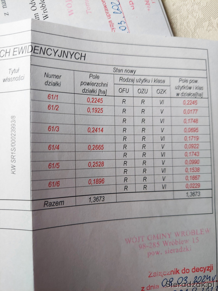 Informacje o działkach: