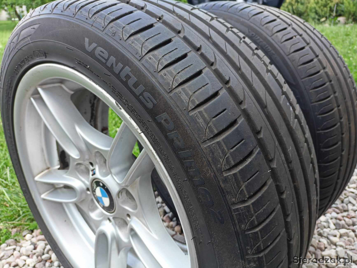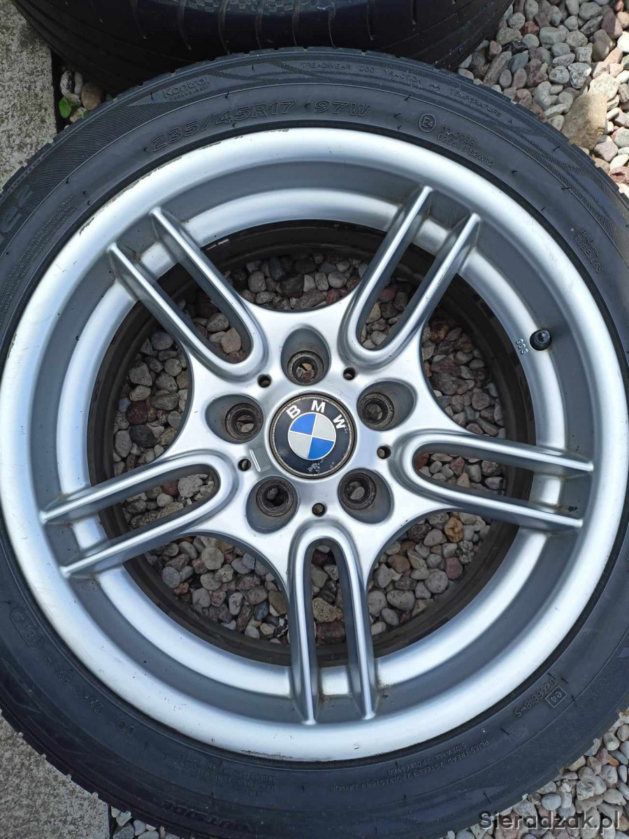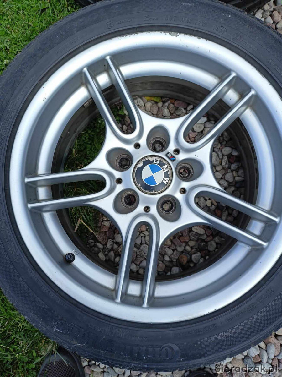 Do sprzedania felgi aluminiowe Styling 66 oryginalne M-pakiet 17 cali ET20, szerokość 4x8j, otwór centrujący - 74.1mm. Jeździły na E39, po zastosowaniu pierścieni centrujących będą pasować do wielu modeli - E36, E46, E90, E60 i innych. Opony 225/45/17 - 2szt. Continental są już słabe, na sezon, 2szt. Hankook są ładne i mają sporo bieżnika, ok. 6mm.