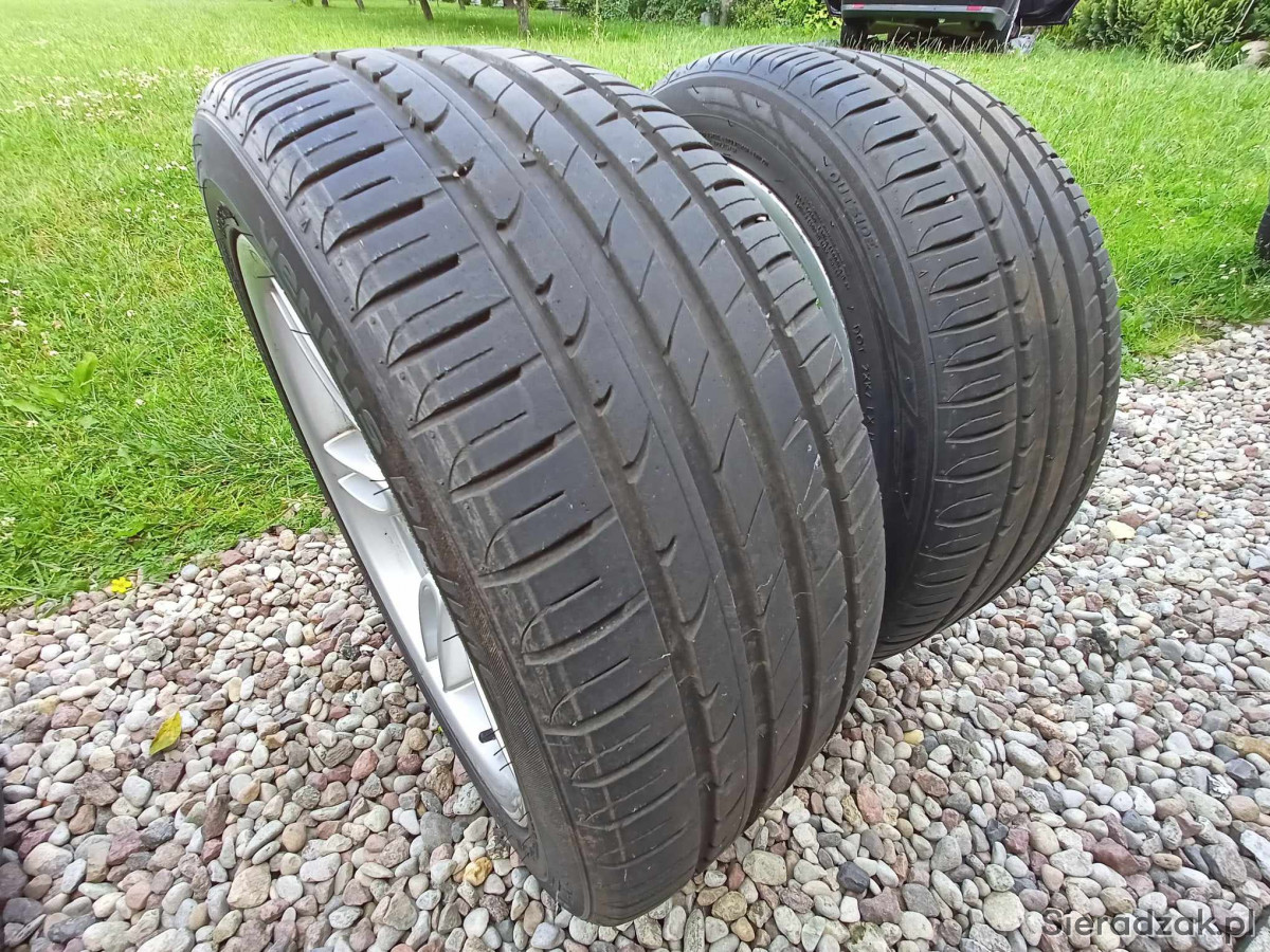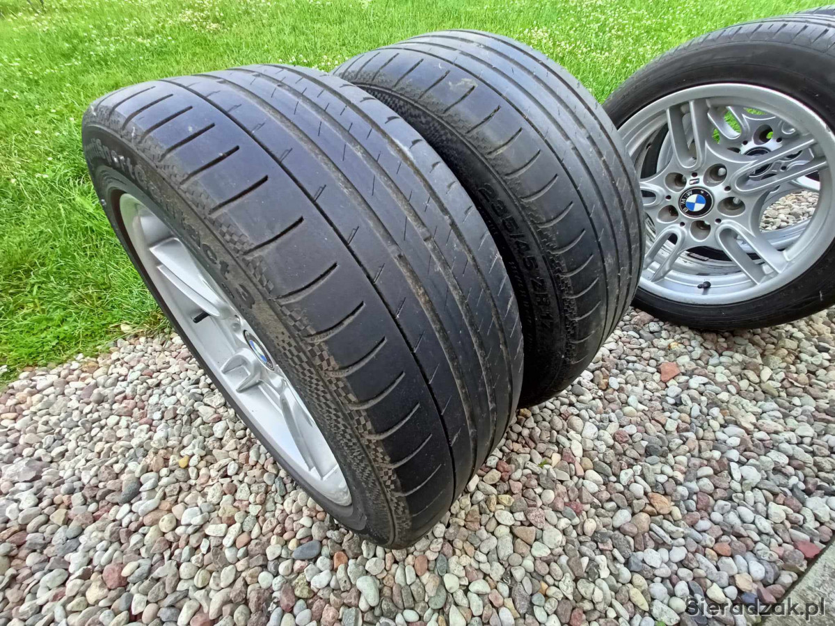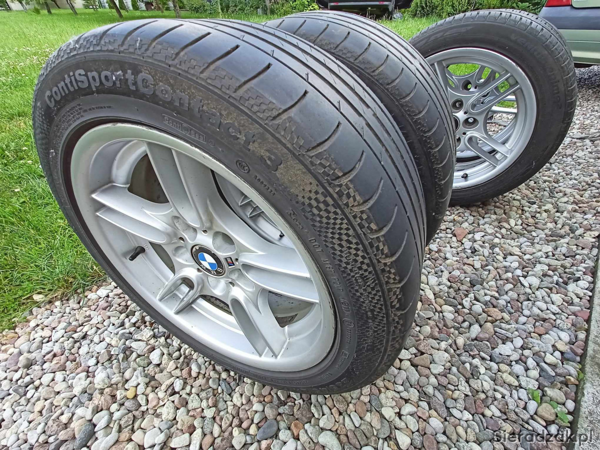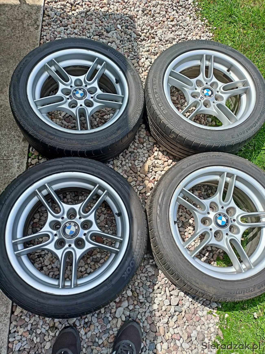 Do sprzedania felgi aluminiowe Styling 66 oryginalne M-pakiet 17 cali ET20, szerokość 4x8j, otwór centrujący - 74.1mm. Jeździły na E39, po zastosowaniu pierścieni centrujących będą pasować do wielu modeli - E36, E46, E90, E60 i innych. Opony 225/45/17 - 2szt. Continental są już słabe, na sezon, 2szt. Hankook są ładne i mają sporo bieżnika, ok. 6mm.