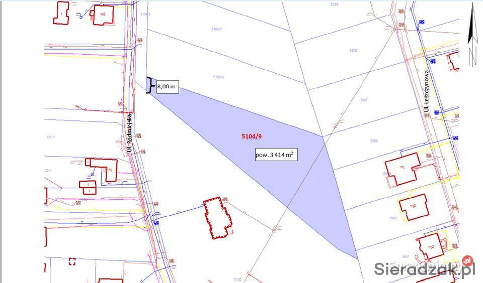 Działka budowlana o numerze geodezyjnym 5104/9, o powierzchni 3414 m2, położona w Sieradzu przy ul. Podmiejskiej.