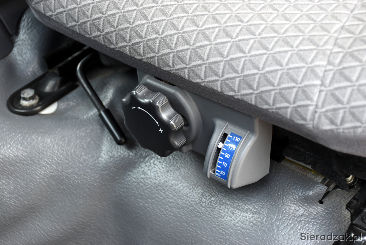-elastyczne zawieszenie fotela kierowcy. Regulacja twardości zawieszenia w zależności od wagi kierowcy (do 130 kg) odbywa się za pomocą pokrętła pod fotelem.