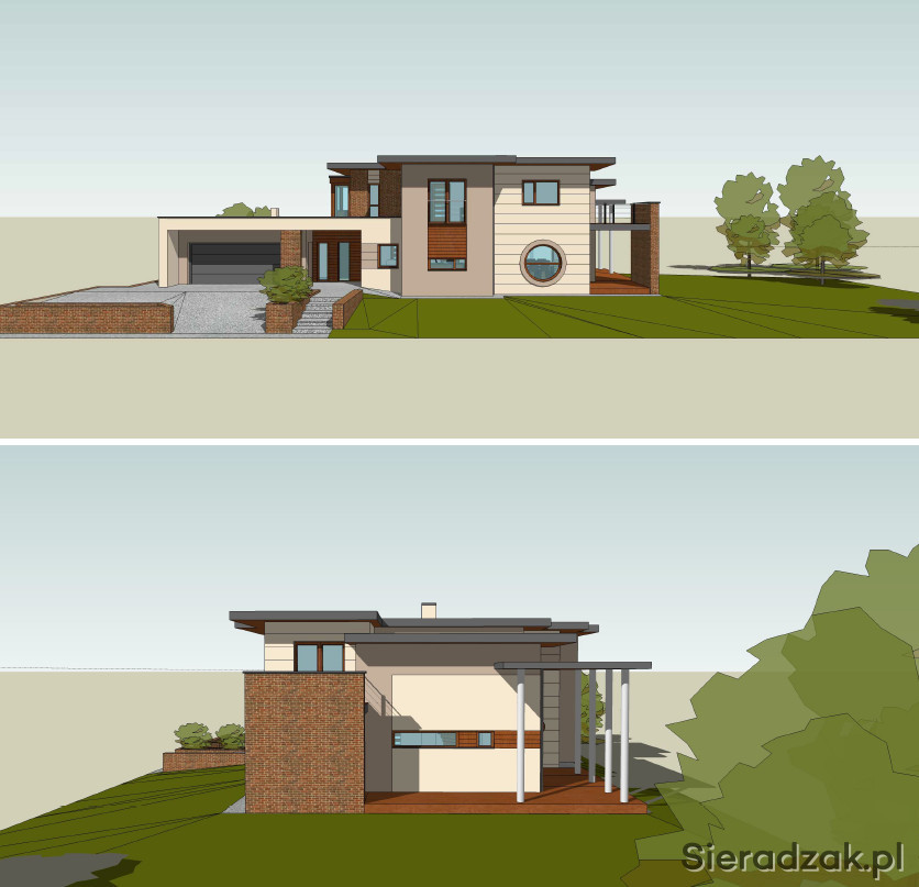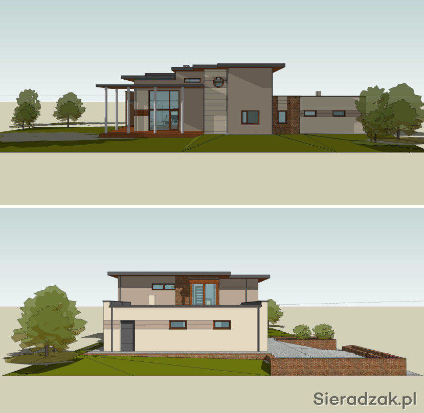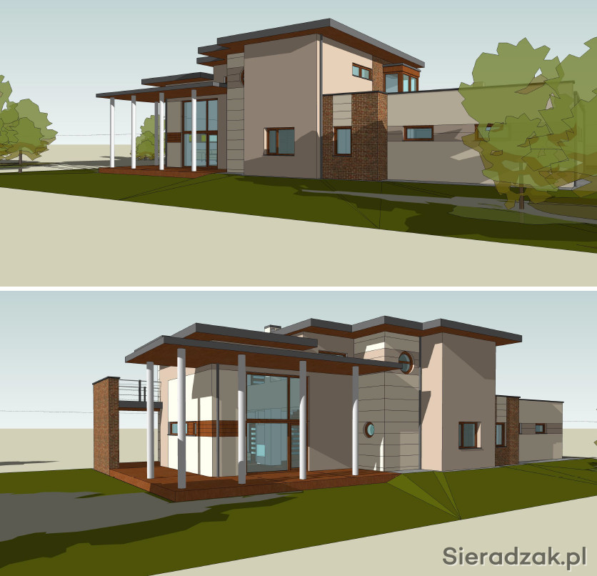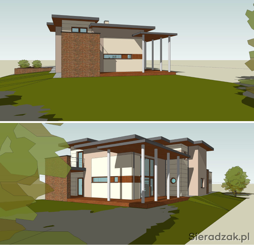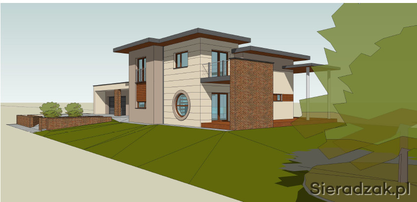 Dom jest bardzo ciekawie zaprojektowany, przestronny. Wybudowany w technologii pustak ceramiczny. Dachy płaskie. Duża działka pozwala na aranżację według własnego pomysłu.