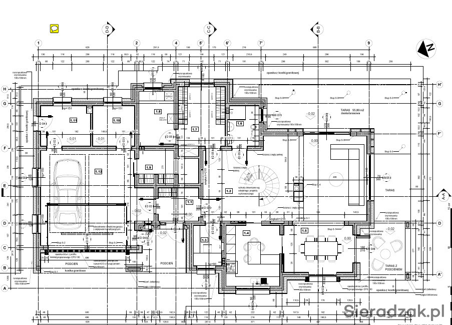 1. Dach - strop zbrojony podwójny, beton B-25 ocieplony styropian EPS-100 35-65 cm grubości, papy termozgrzewalne x 3 (szczegóły na maila).