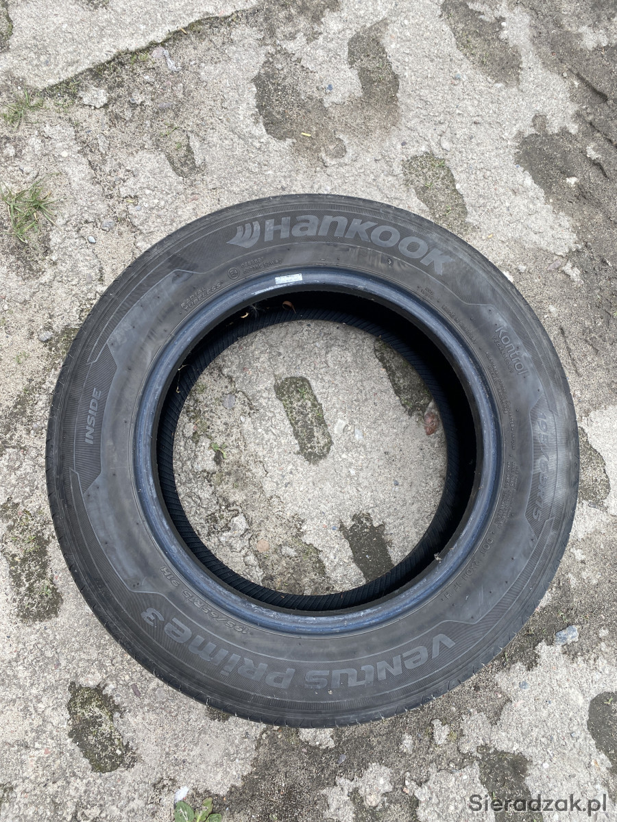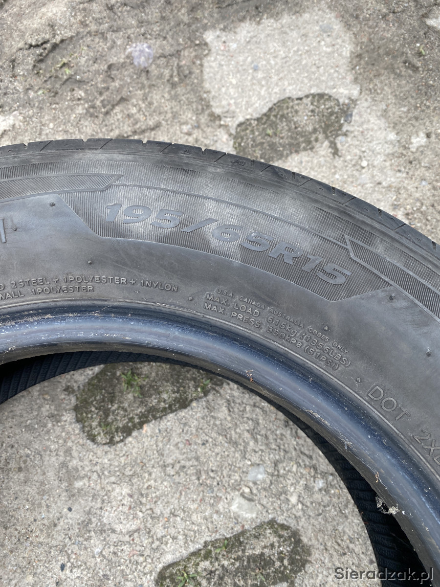 Prezentowane na zdjęciu to opony Hankook 195/65R15- 4 szt. rok 2016, wielkość bieżnika ok. 3,2 - 4,4 mm. Cena 50 zł za komplet.