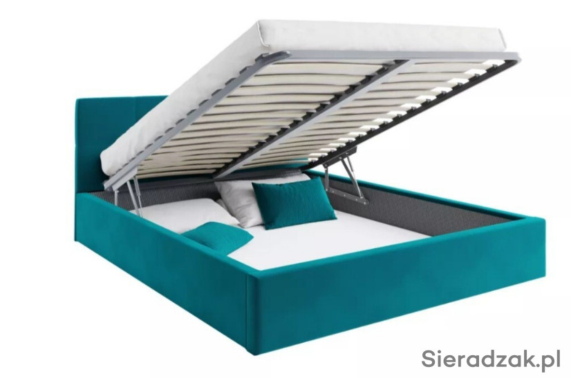 Aby zyskać na funkcjonalności łóżka, dodaliśmy do niego podnoszony stelaż. Dwa siłowniki gazowe ułatwiają jego podnoszenie, nie trzeba użyć dużo siły, aby go unieść.Rozstaw listew wstelażu jest odpowiedni, aby materac na nim leżący miał zapewnioną właściwą wentylację, aprzy okazji nie uległ odkształceniu. Dzięki temu nie osadza się wnim ani wilgoć czy roztocza imożemy cieszyć się higienicznymi warunkami snu podczas każdej nocy. Sprężynujące listwy umieszczone wspecjalnych uchwytach pracują wraz zmateracem, co dodatkowo korzystnie wpływa na wygodę. Wykonano je wtaki sposób, aby nie rozwarstwiały się inie .