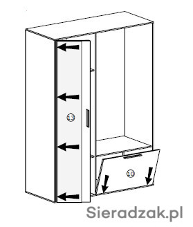 Garderoba z lustrem, oraz zabudowaniem BIS. Posiada na zewnętrznej stronie trzy wieszaki, idealne na kurtki, płaszcze czy bluzy i torebki. Poniżej znajduje się szafka na buty z przegrodą, co ułatwia organizacje. Szafa po lewej stronie posiada w sobie dwie półki. Jedną do góry a drugą na dole, pozwala to na umieszczenie na nich rzeczy, które wymagają położenia na płaskiej powierzchni. Nowoczesną opcją jest wysuwany wieszak, uwydatniający unikalność i funkcjonalność szafy. Dostępna w sześciu wybarwieniach.