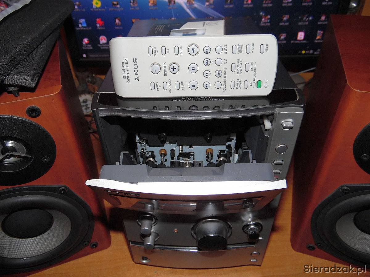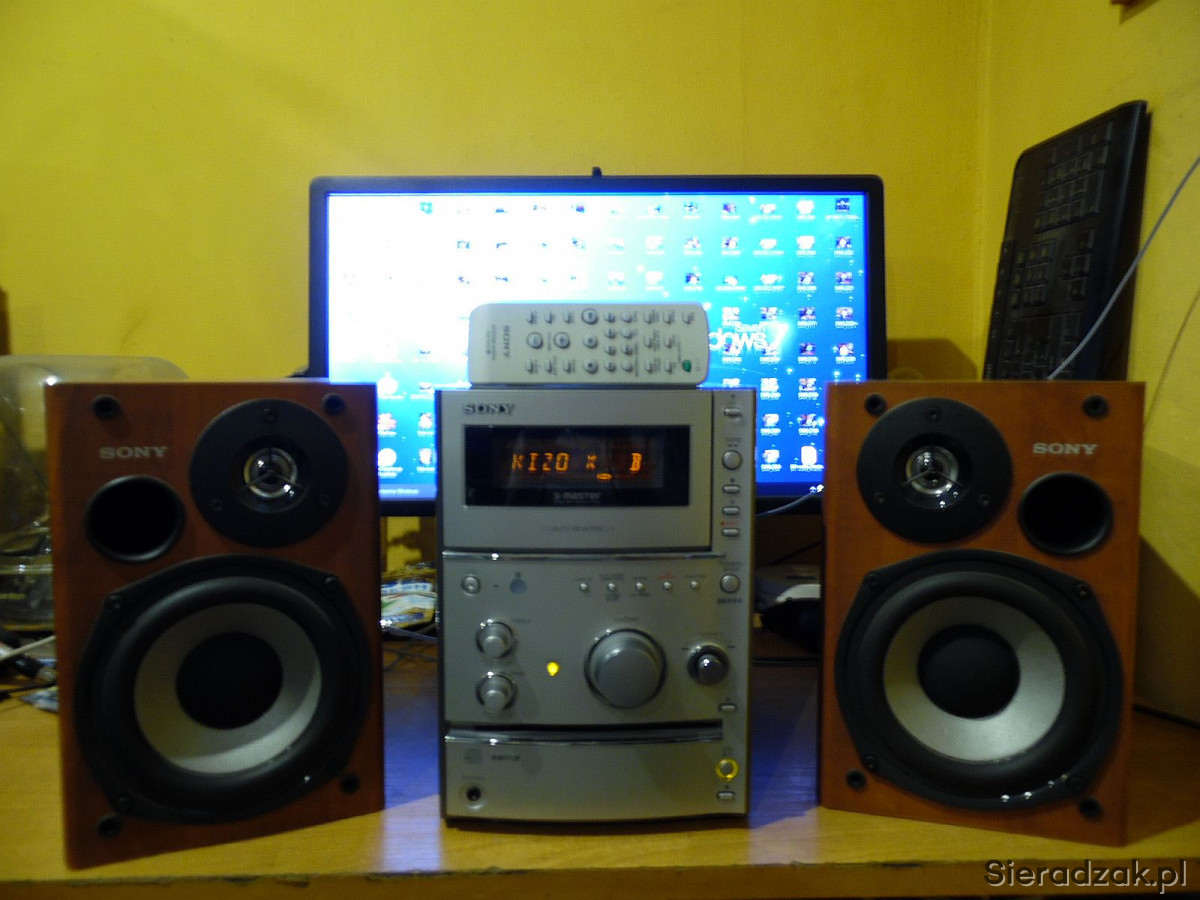 Niesamowita Mikro wieża Sony CMT-CPX11 zdobywca nagrody EISA Awards cyfrowy wzmacniacz S-Master 2x75Watt Radio z RDS magnetofon kasetowy z autoreversem odtwarzacz CD MP3 z CD-Textem i wyjściem cyfrowym Digital Optical Output. Kolumny w drewnie z Bass-Refelexem graja niesamowicie. W komplecie pilot i adapter Bluetooth do bezprzewodowej komunkacji z telefonem żeby łatwo i wygodnie korzystać z zasobów muzycznych. Polecam.